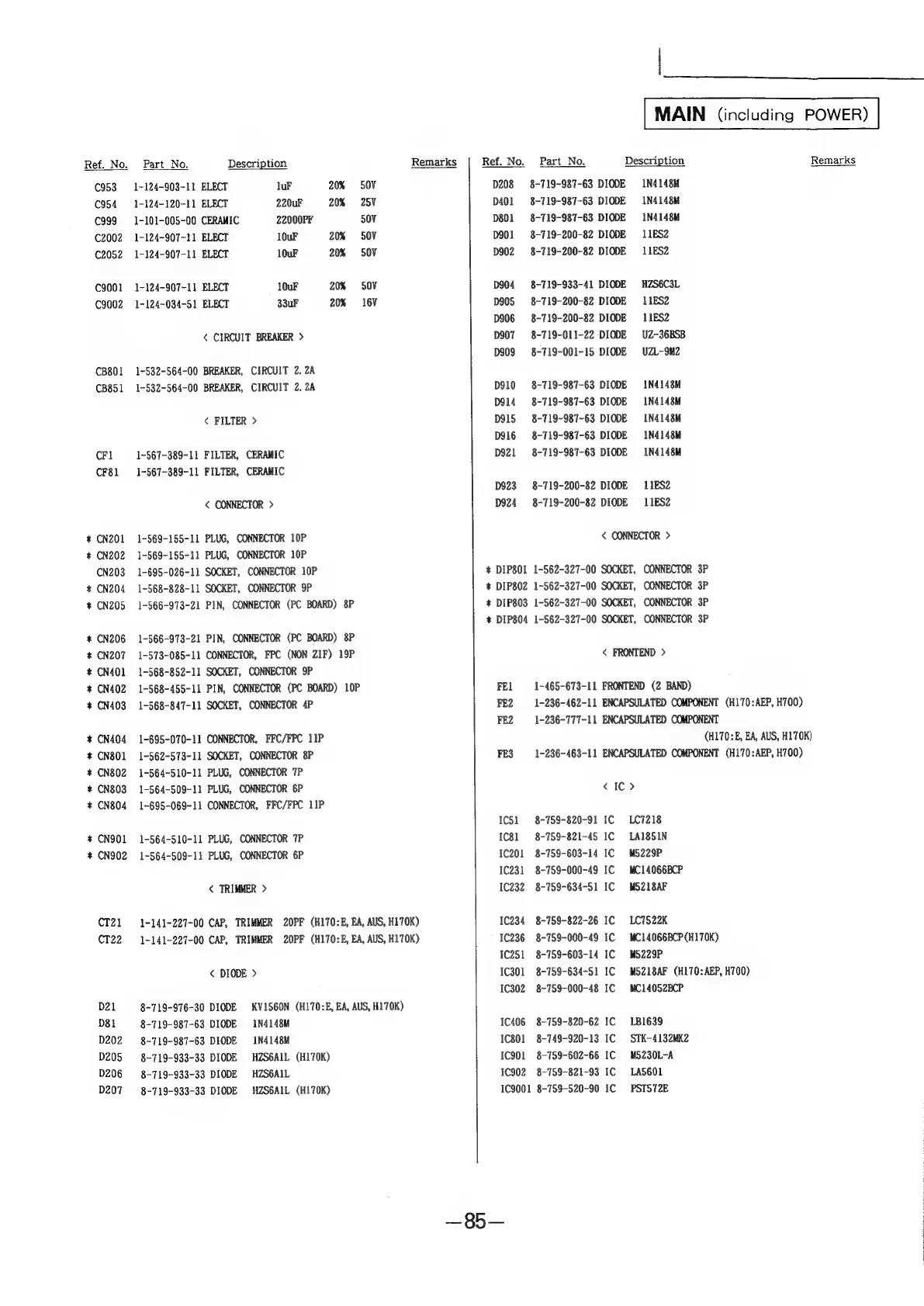 Sony HCD-H700 - MAIN (including POWER)