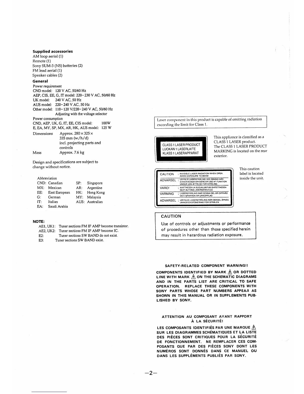 Sony HCD-H701 - Supplied Accessories