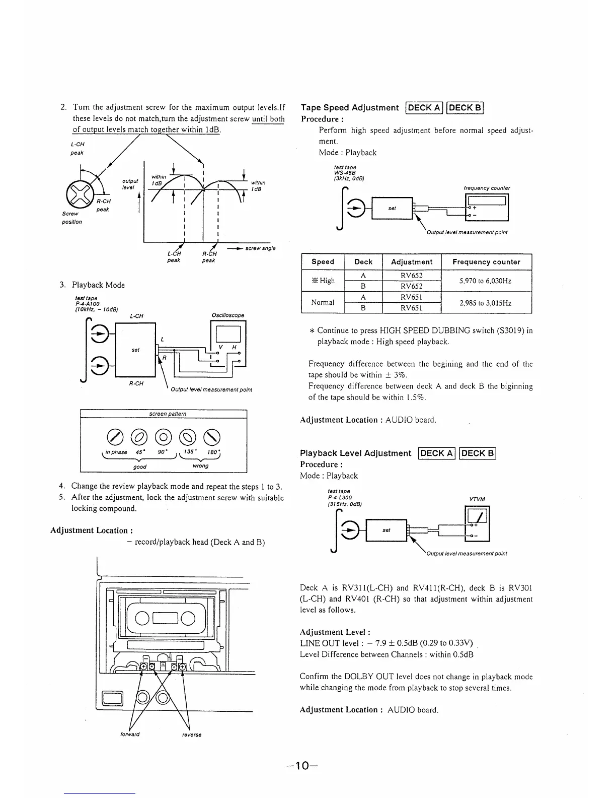 Sony HCD-H701 - Tape Speed Adjustment; Playback Level Adjustment