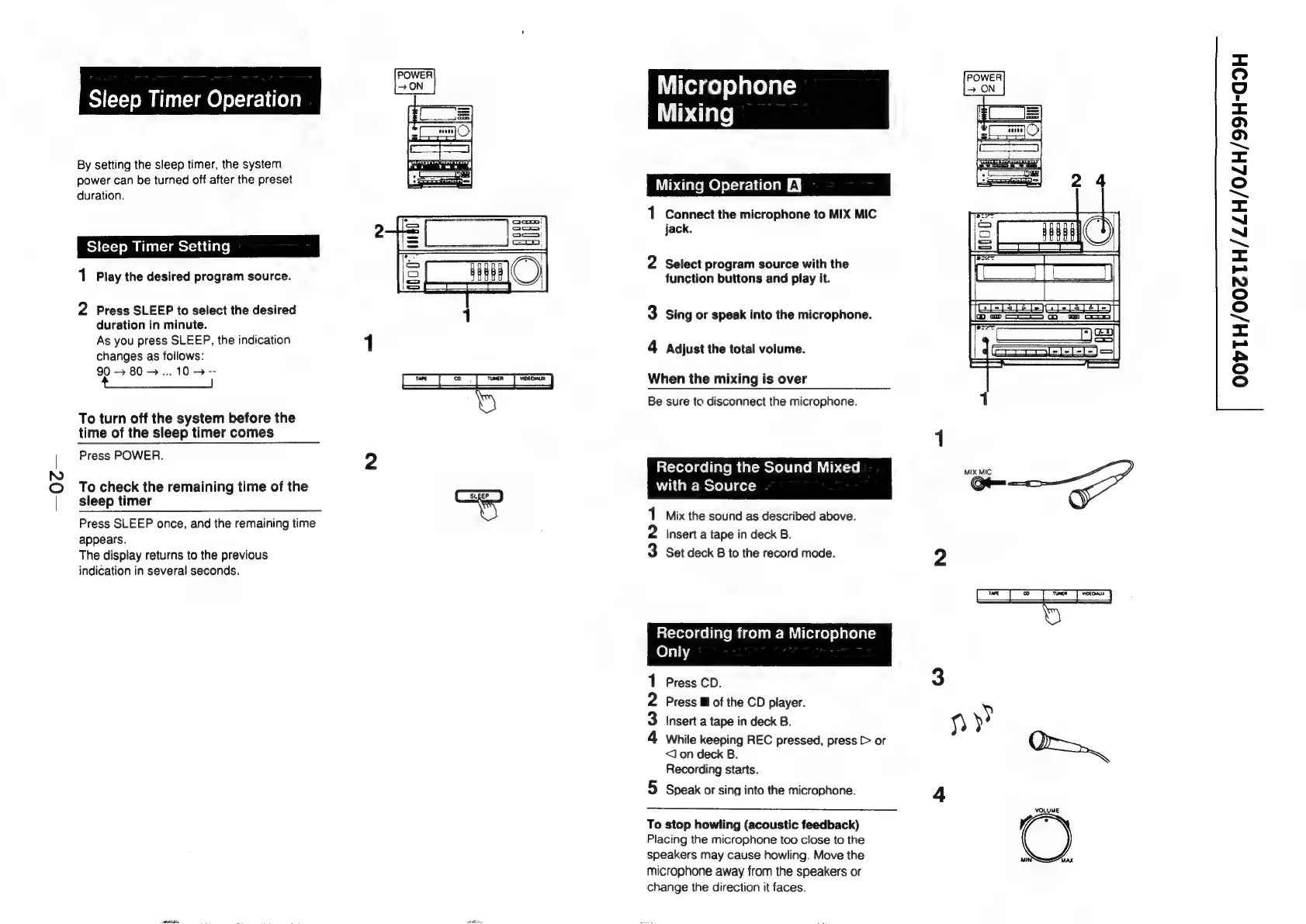 Sony HCD-H77 - Sleep Timer and Microphone Operations