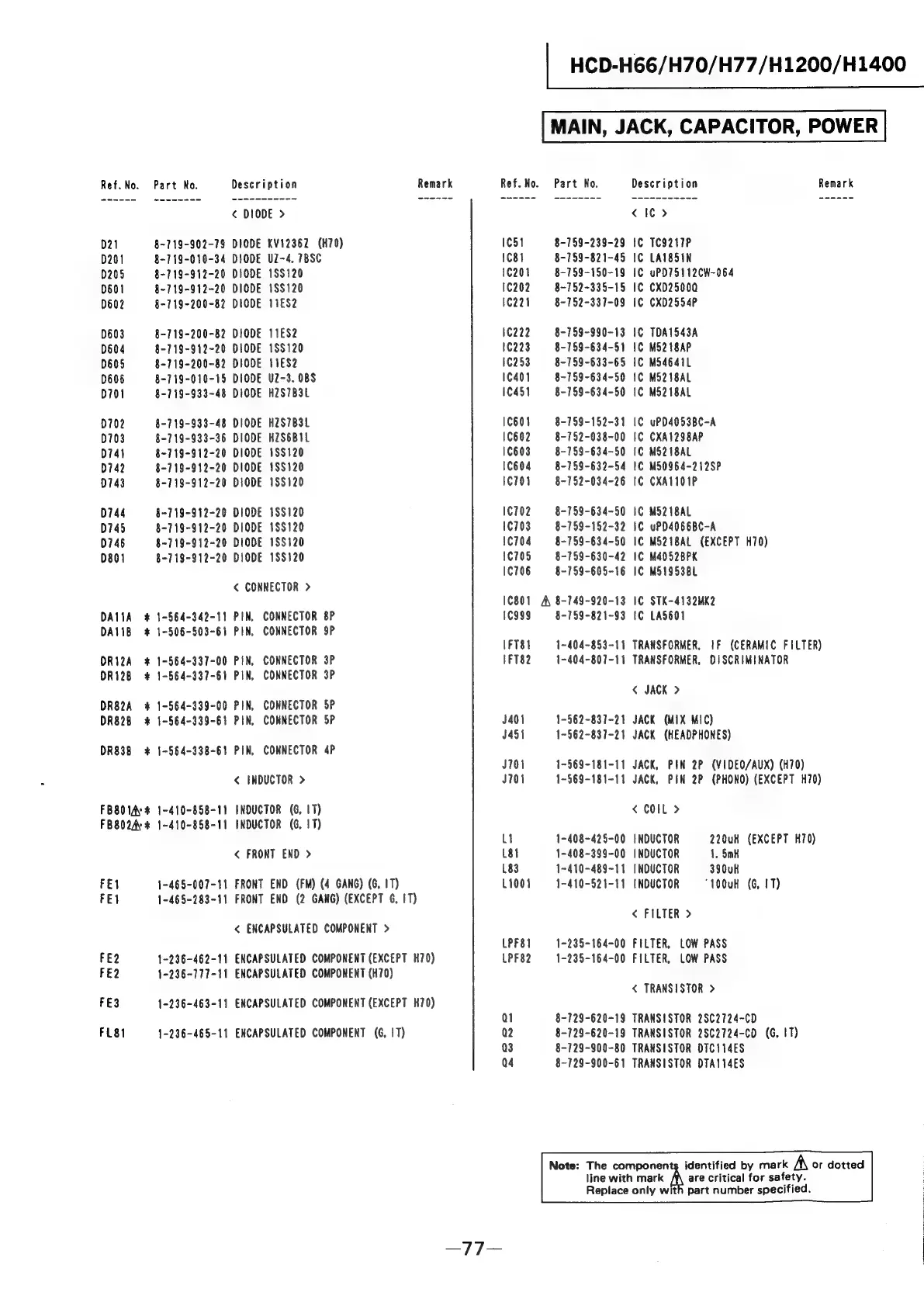 HCD-H66/H70/H77/H1200/H1400