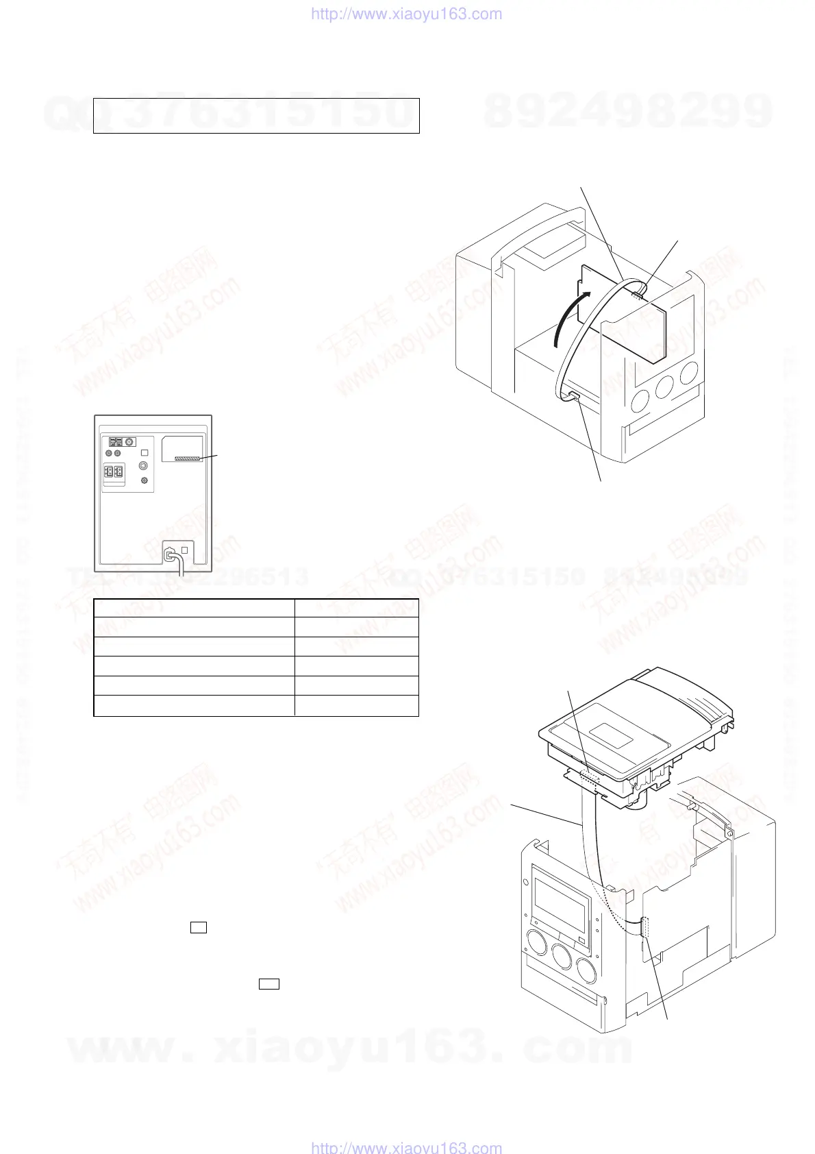 to the main board (CN301) and TC board (CN301).