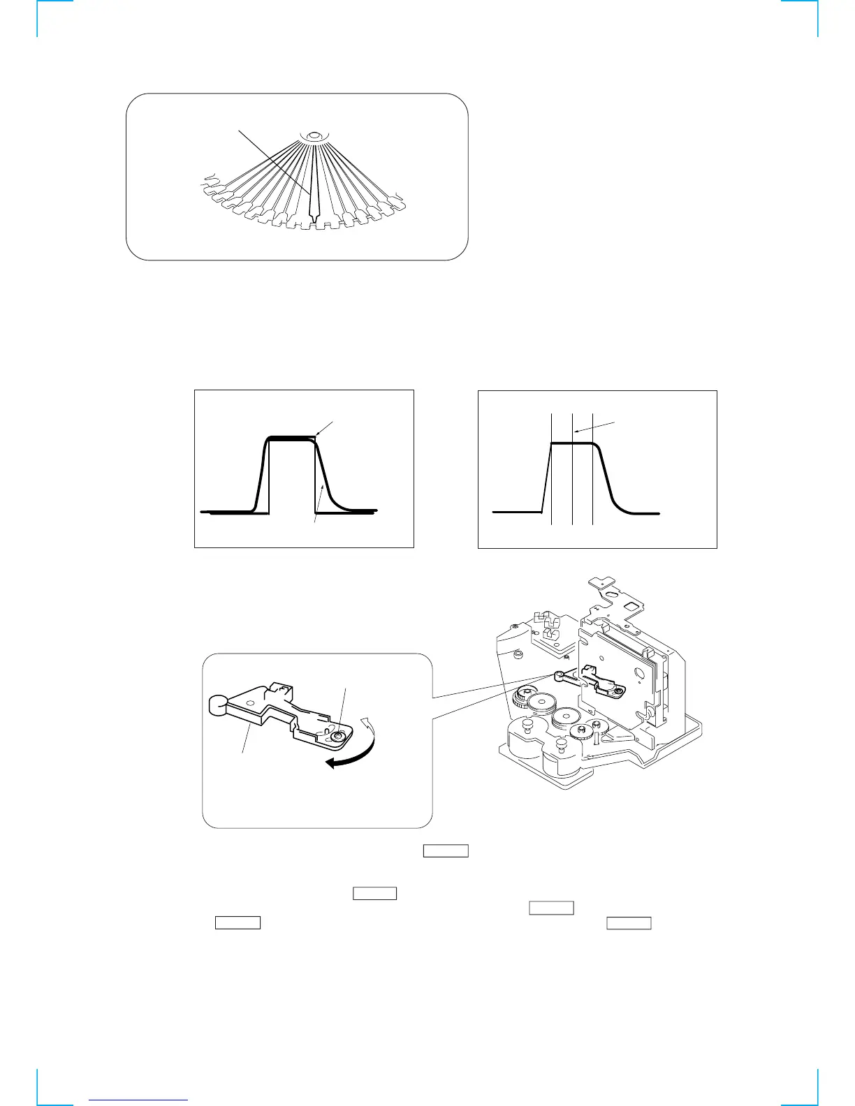 9. The disc table rotates in the counterclockwise direction. Measure the waveform and make sure that the flat portion center at the top of the