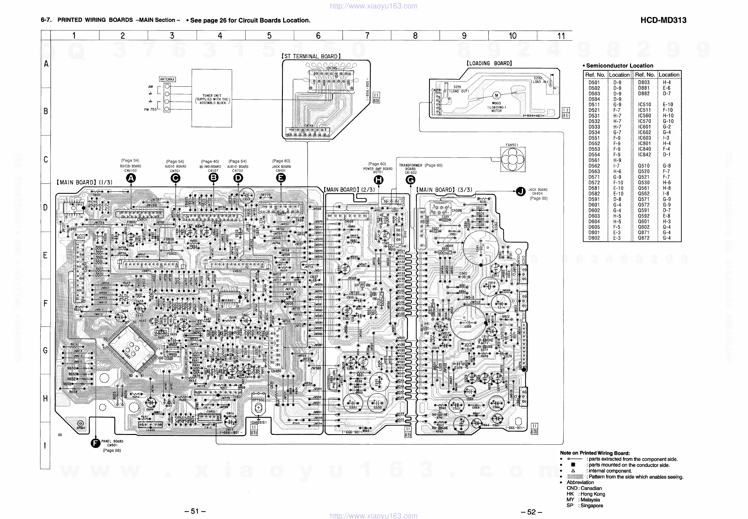 Sony HCD-MD313 - Main Section Printed Wiring Boards; Main Board (1;3) Layout; Main Board (2;3) Layout; Main Board (3;3) Layout