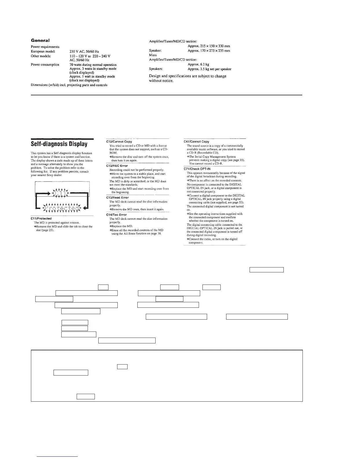 The self-diagnosis function consists of error codes for customers which are displayed automatically when errors occur, and error codes which