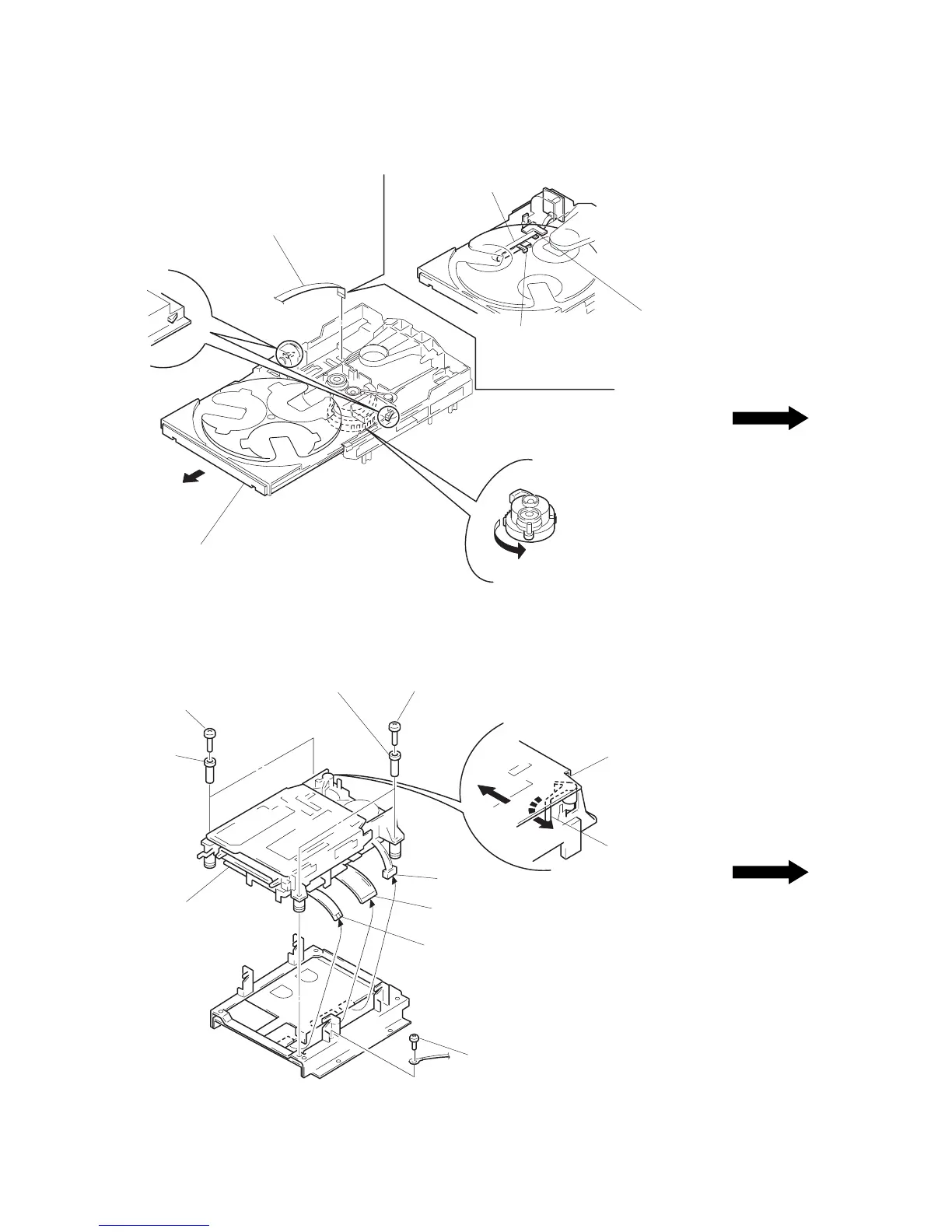 Note: When mounting the disc tray, route a flat
