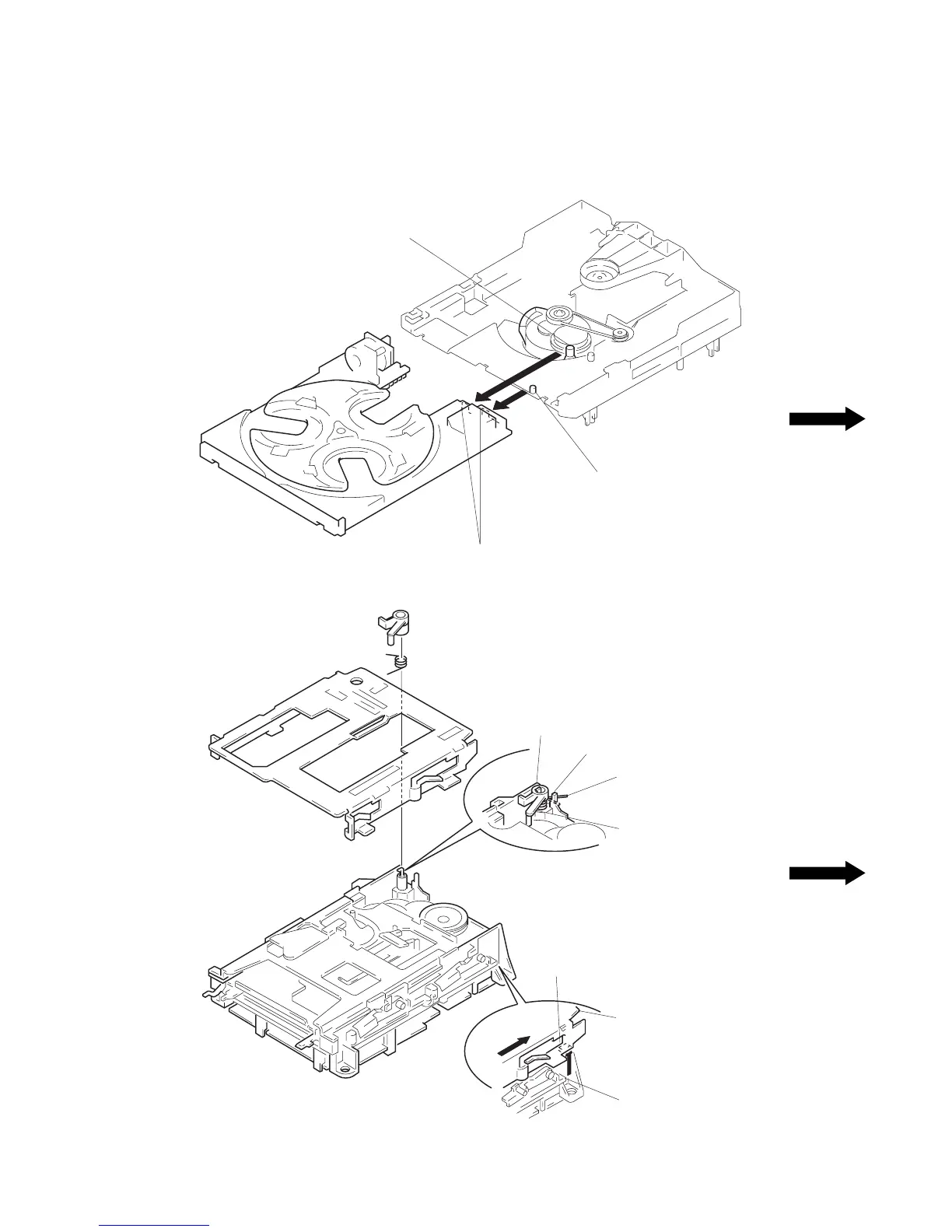 Note: When mounting the disc tray, the collars