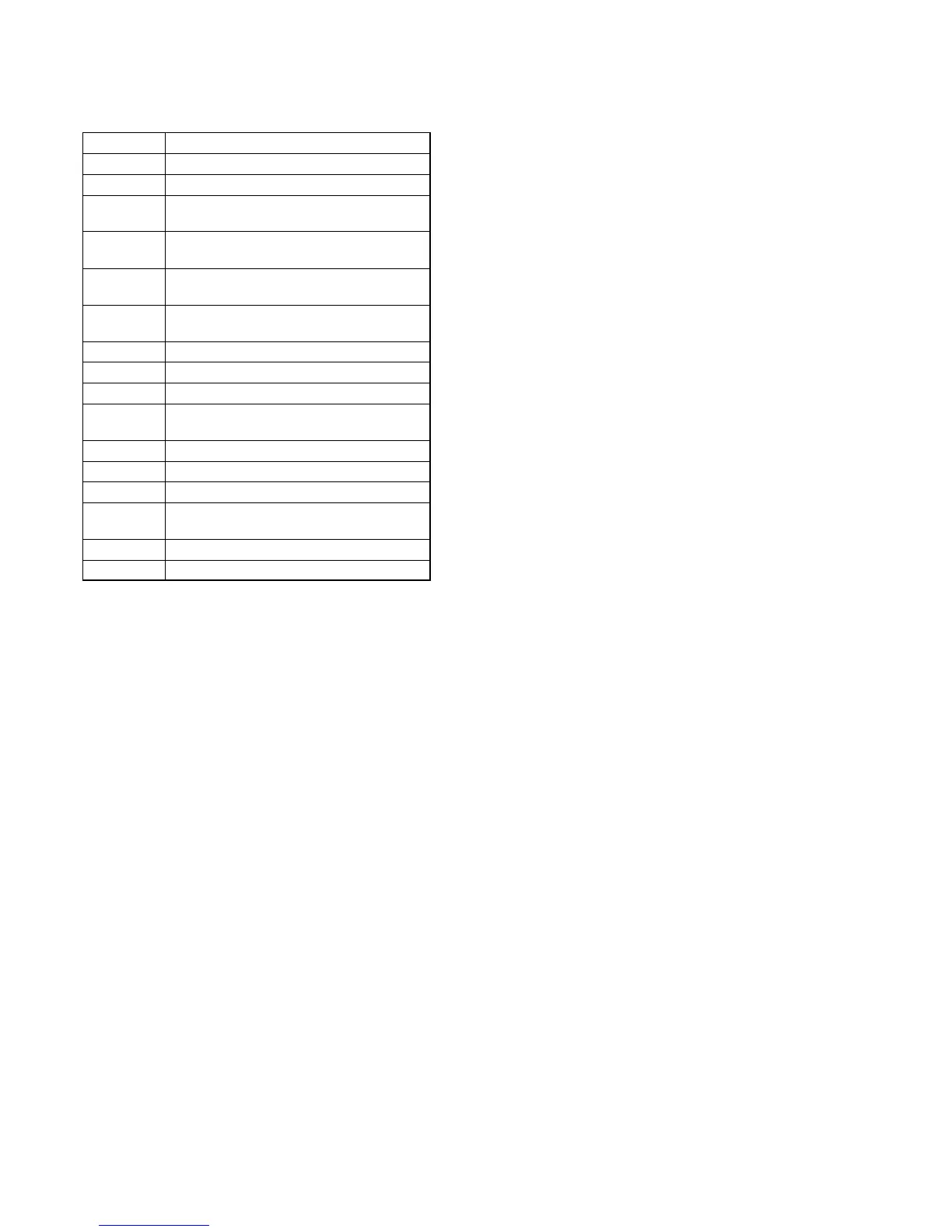 Table of Error Codes