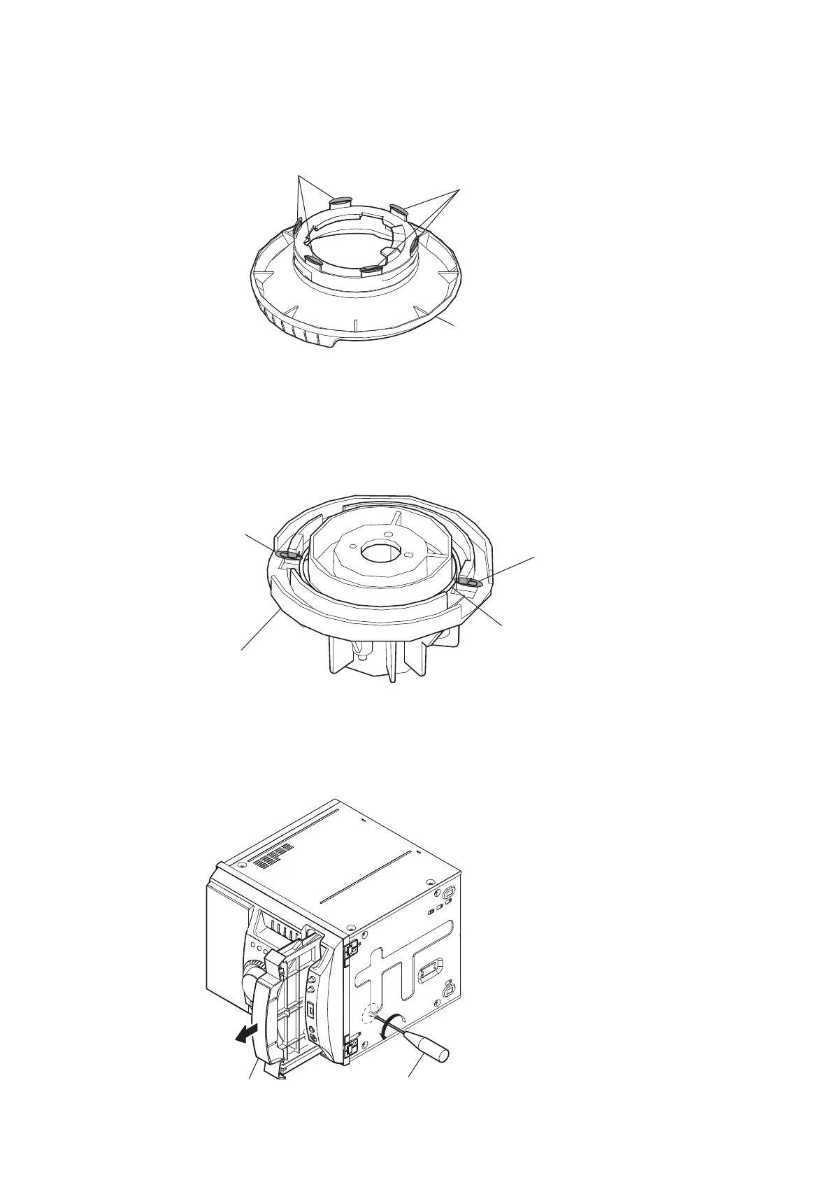As illustrated, insert a fl at-head screwdriver and give a turn to the left to put the tray out.