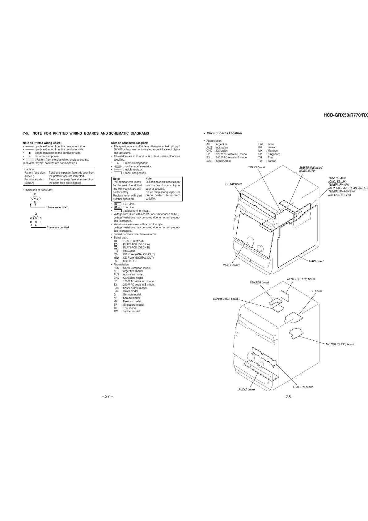 7-5. NOTE FOR PRINTED WIRING BOARDS AND SCHEMATIC DIAGRAMS