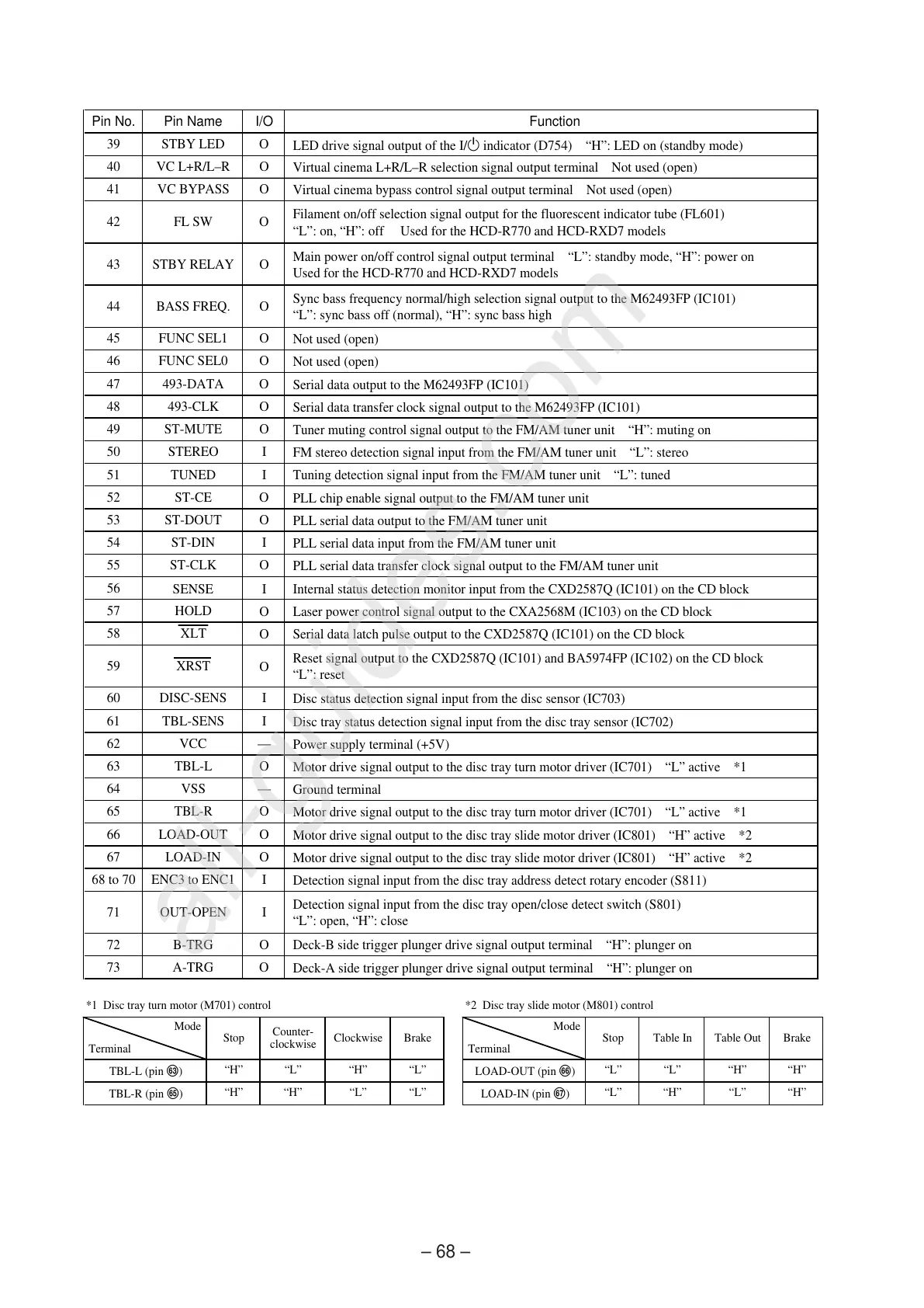 “L”: on, “H”: off Used for the HCD-R770 and HCD-RXD7 models