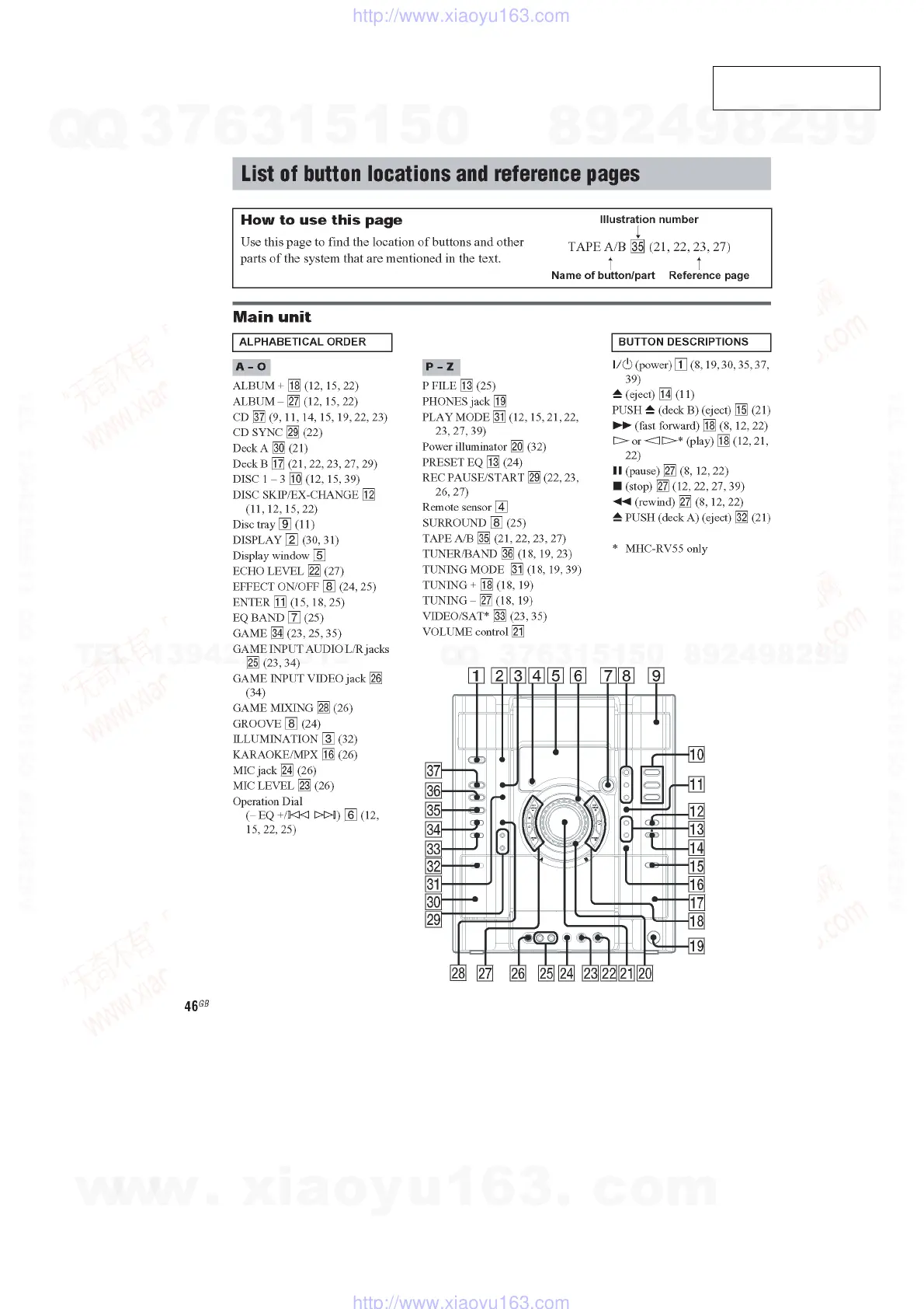 Sony HCD-RV55 - 2 General; List of Button Locations and Reference