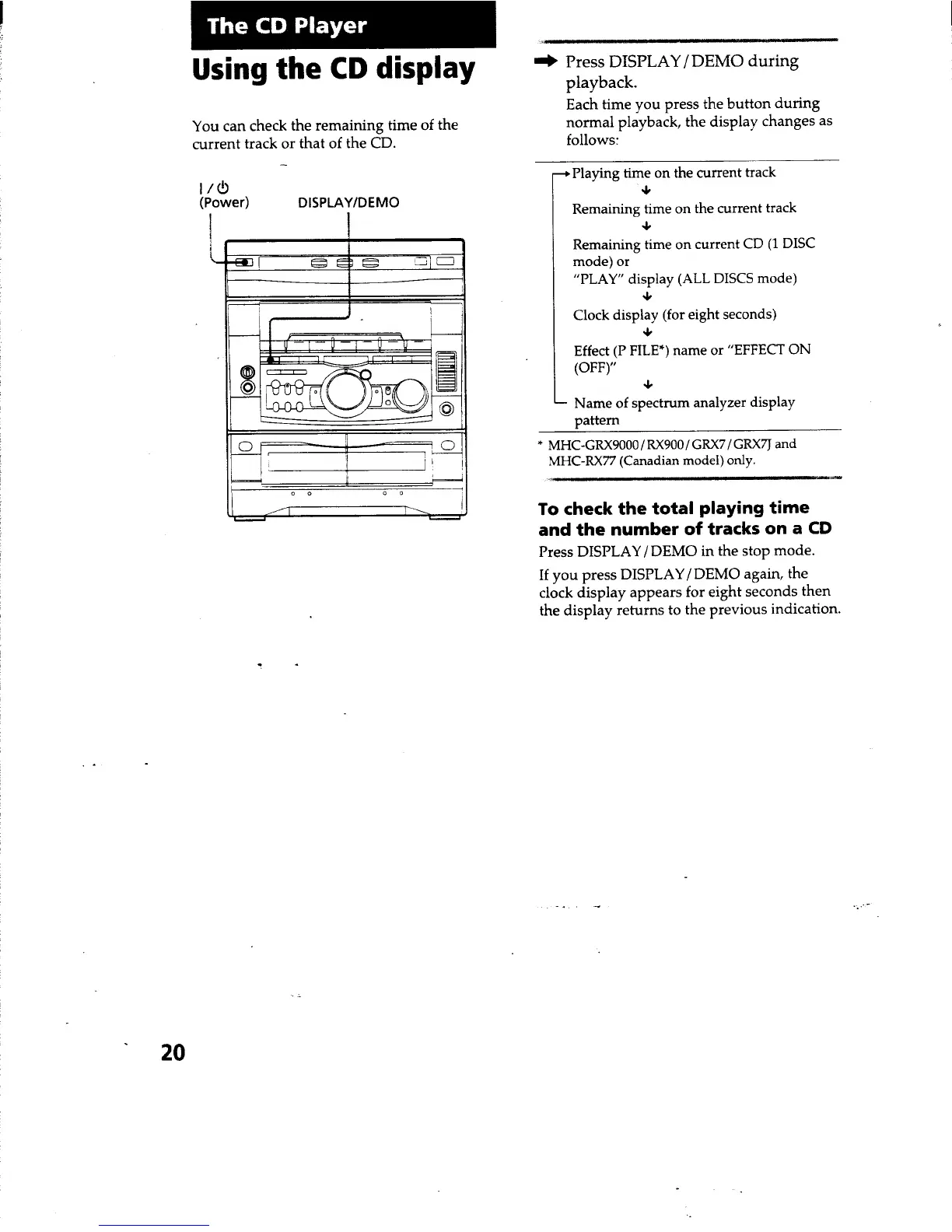 Sony HCD-RX66 - The CD Player; Using the CD Display