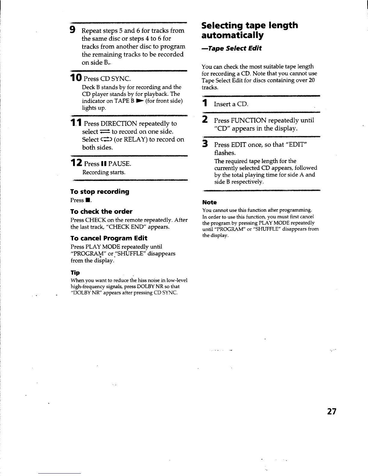 Sony HCD-RX66 - Selecting Tape Length Automatically