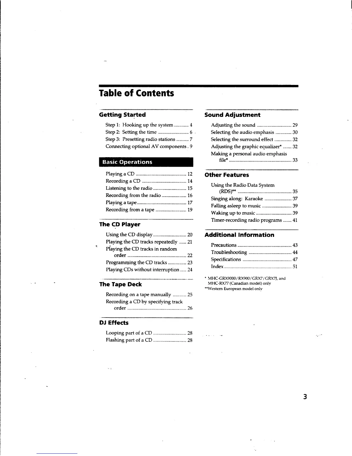 Sony HCD-RX66 - Table of Contents