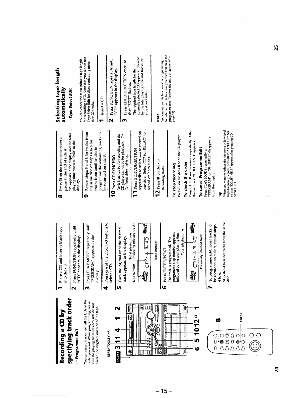 Sony HCD-RX90 - Recording CD by Specifying Track Order: Programme Edit