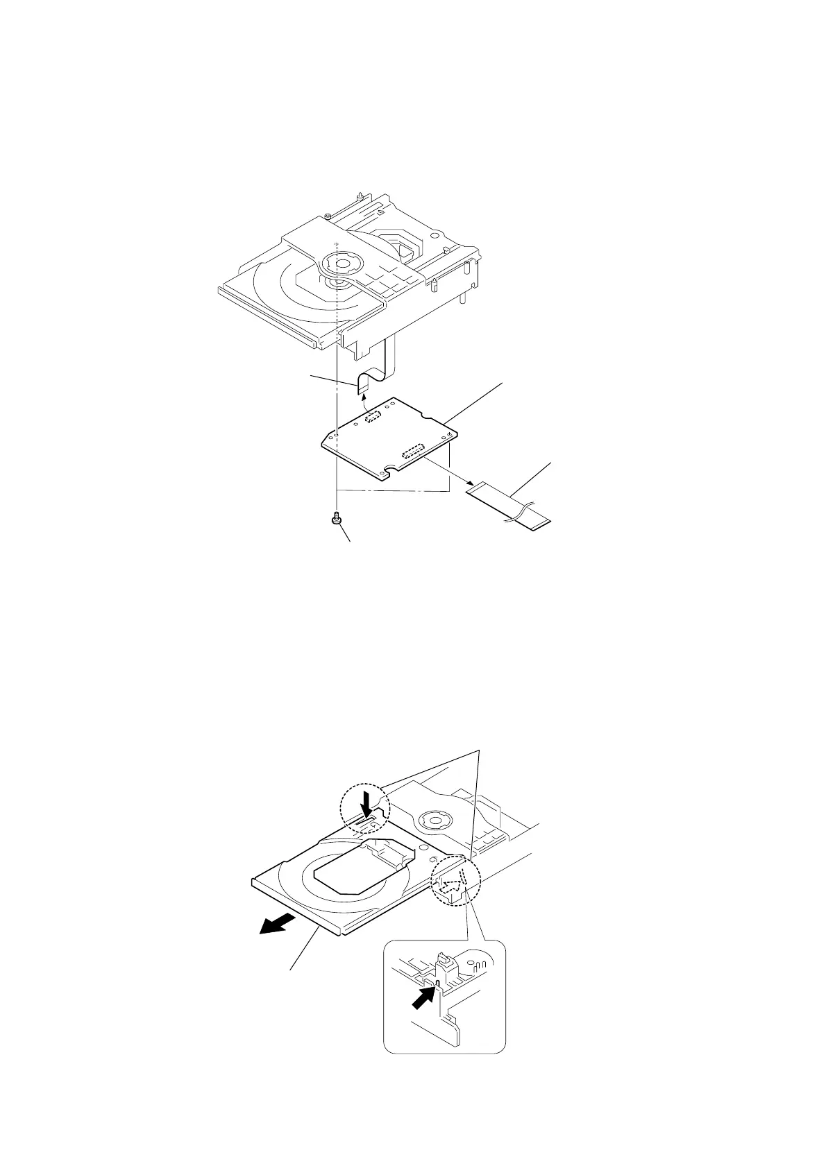 While pushing the two protrusions, release the two claws fixing the tray