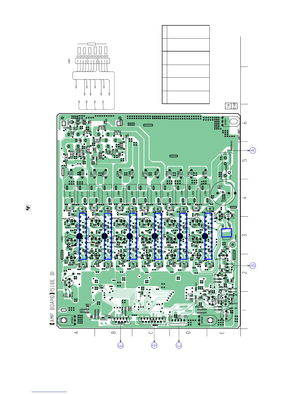 5-21. Printed Wiring Board — AMP Section (SIDE B) — • See page 23 for Circuit Boards Location.