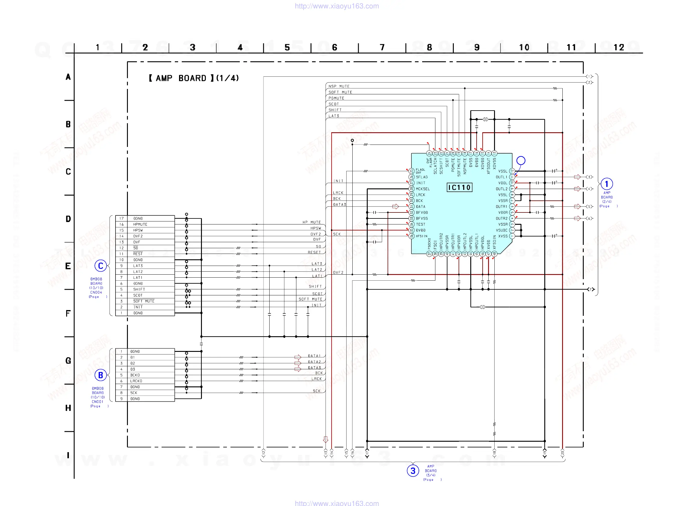 6-25. SCHEMATIC DIAGRAM — AMP BOARD (1/4) — See page 70 for Waveform.