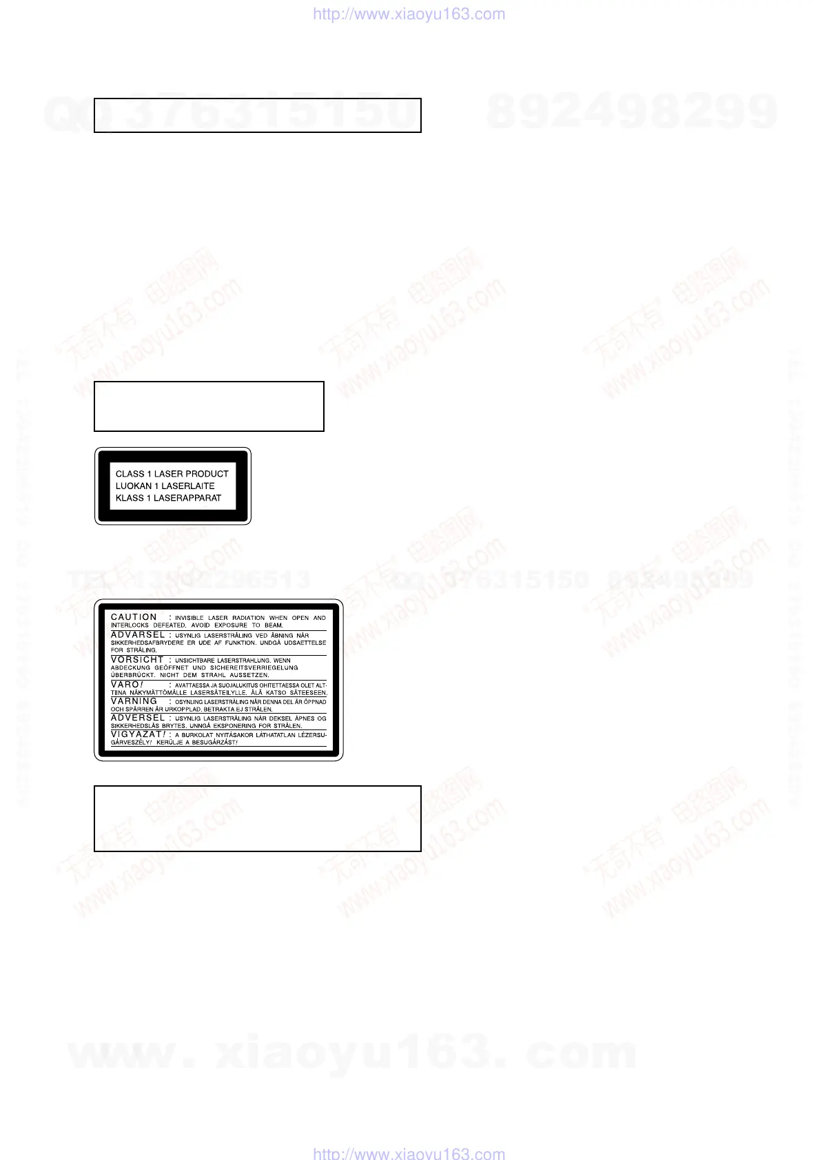 This appliance is classified as a CLASS 1 LASER product. The