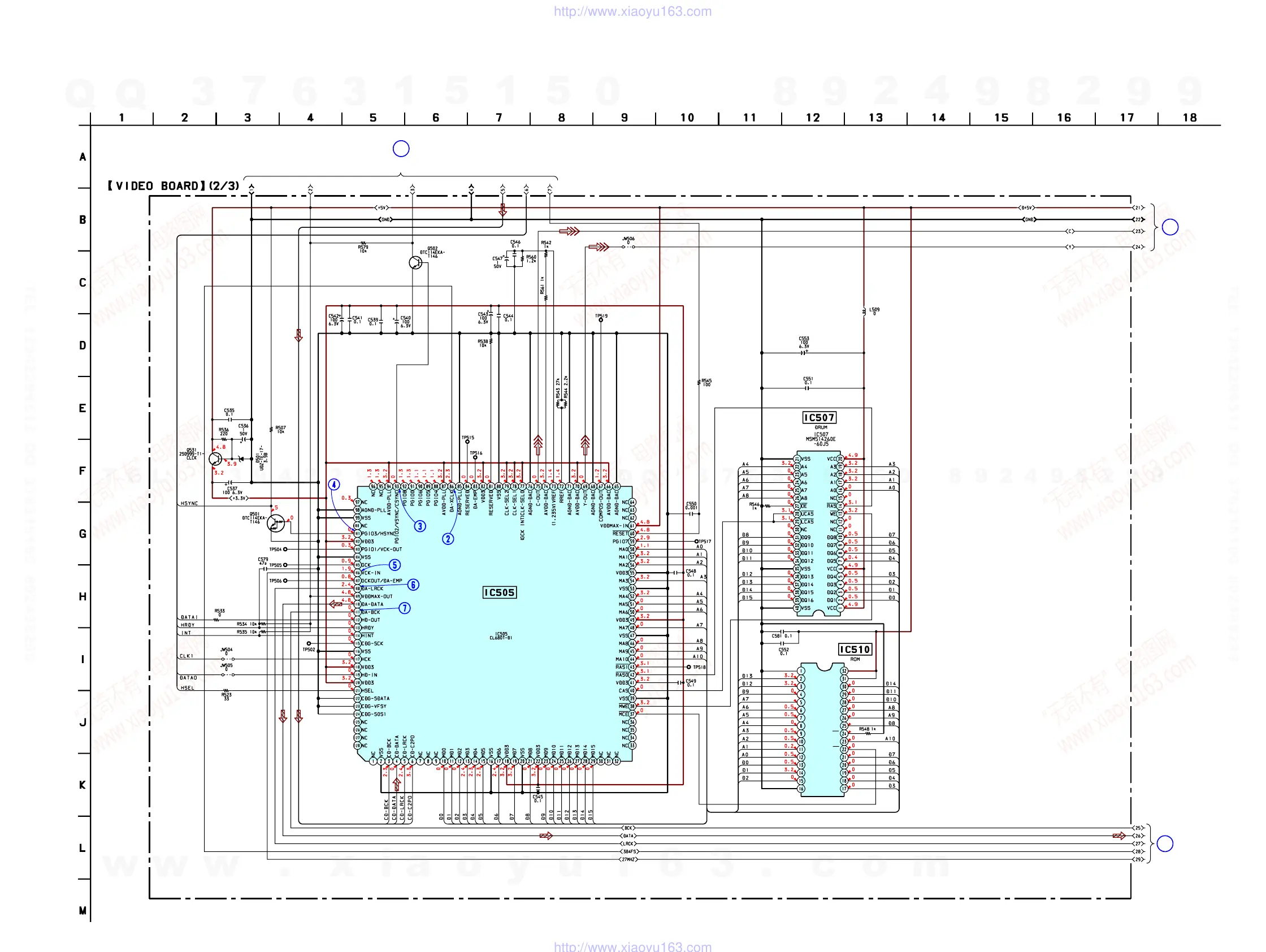 6-27. SCHEMATIC DIAGRAM – VIDEO Board (2/3) – See page 50 for Waveforms.
