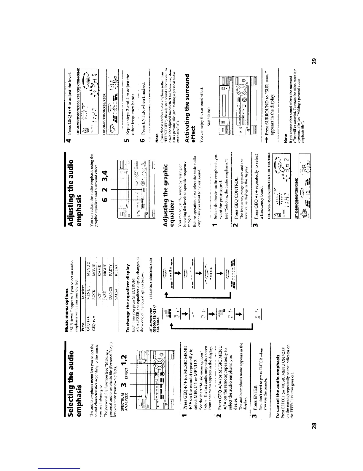Sony HCD-XB4 - Audio Emphasis and Surround Effect; Selecting the audio emphasis; Adjusting the audio emphasis; Adjusting the graphic equalizer