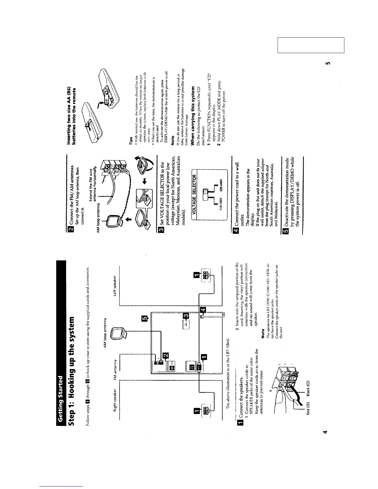 Sony HCD-XB4 - General Information and System Setup; Getting Started; Step 1: Hooking up the system; When carrying this system