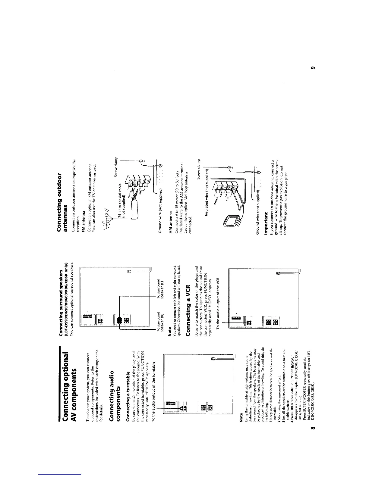 Sony HCD-XB4 - Connecting Optional Components; Connecting audio components; Connecting a turntable; Connecting surround speakers