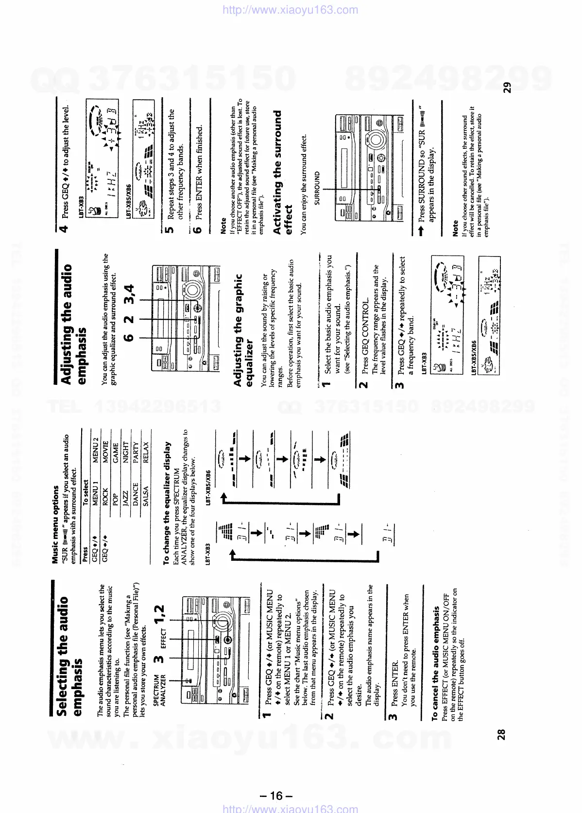 Sony HCD-xb5 - Adjusting the Audio Emphasis; Adjusting the Graphic Equalizer; Music Menu Options; Selecting the Audio Emphasis
