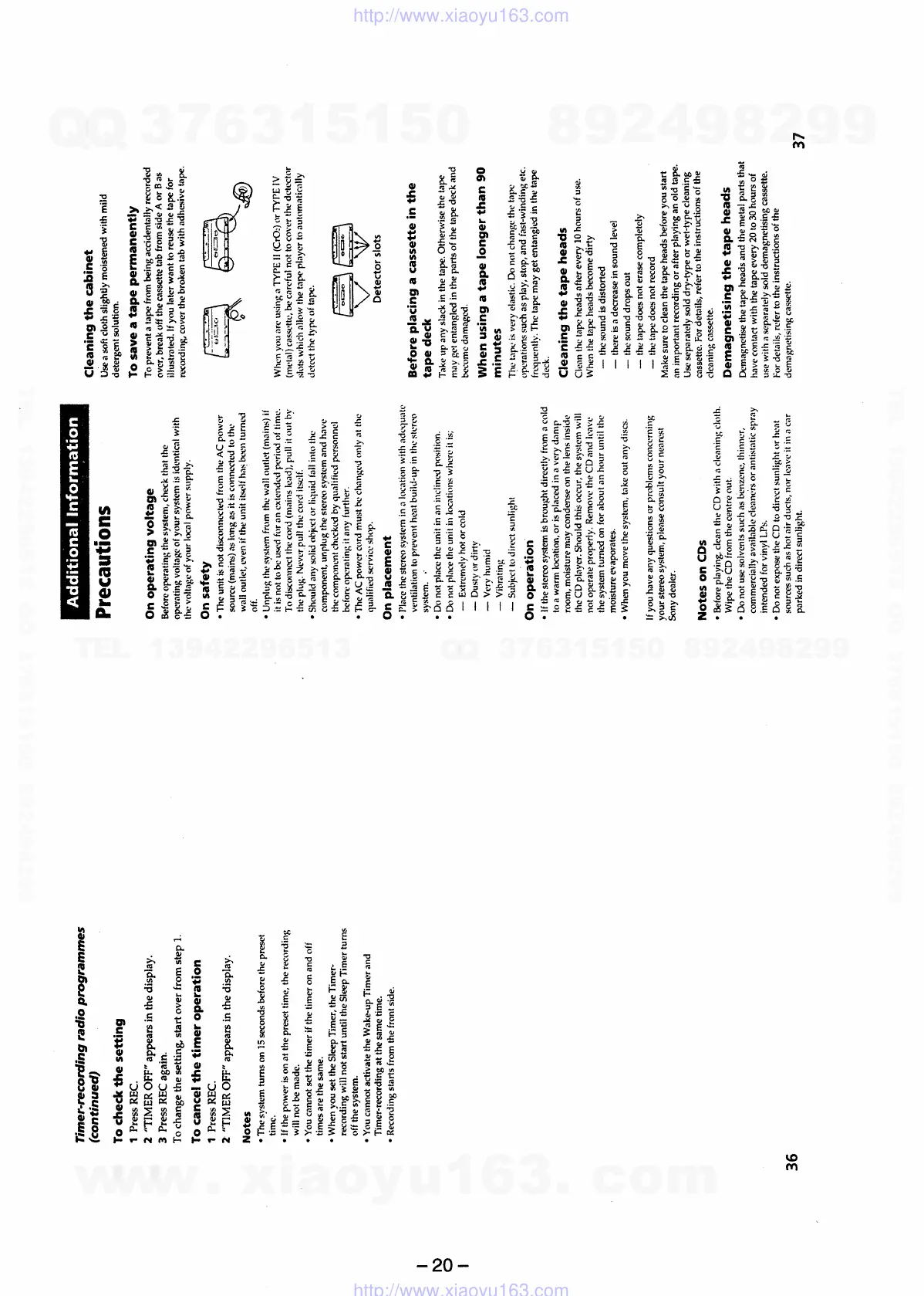 Sony HCD-xb5 - Additional Information; Precautions