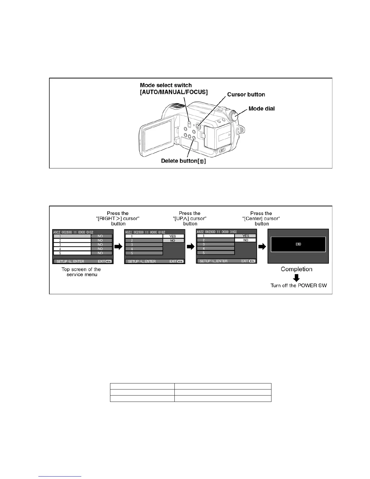 “[FOCUS]” position for more than 3 seconds until the top screen of the Service Menu being displayed.