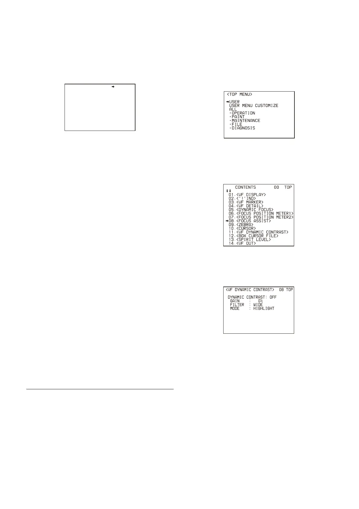Setting DYNAMIC FOCUS on the <VF DETAIL> page or