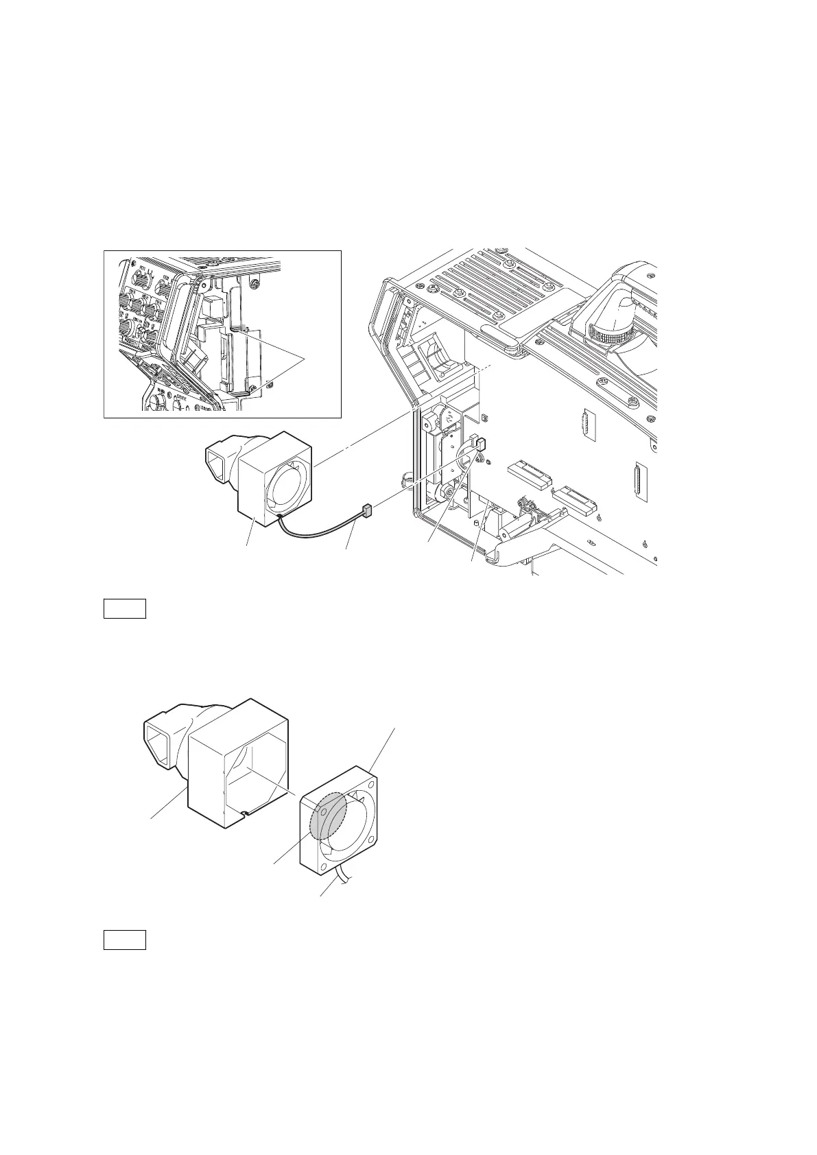 When installing the DC fan (rear), carefully install it paying attention to the label and harness locations.