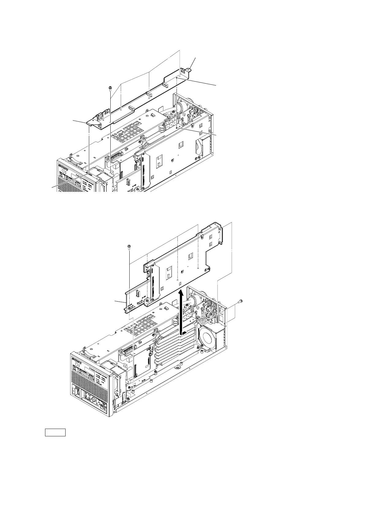 7. Remove the six screws, and then remove the NET-37 board assembly in the direction of the arrow.