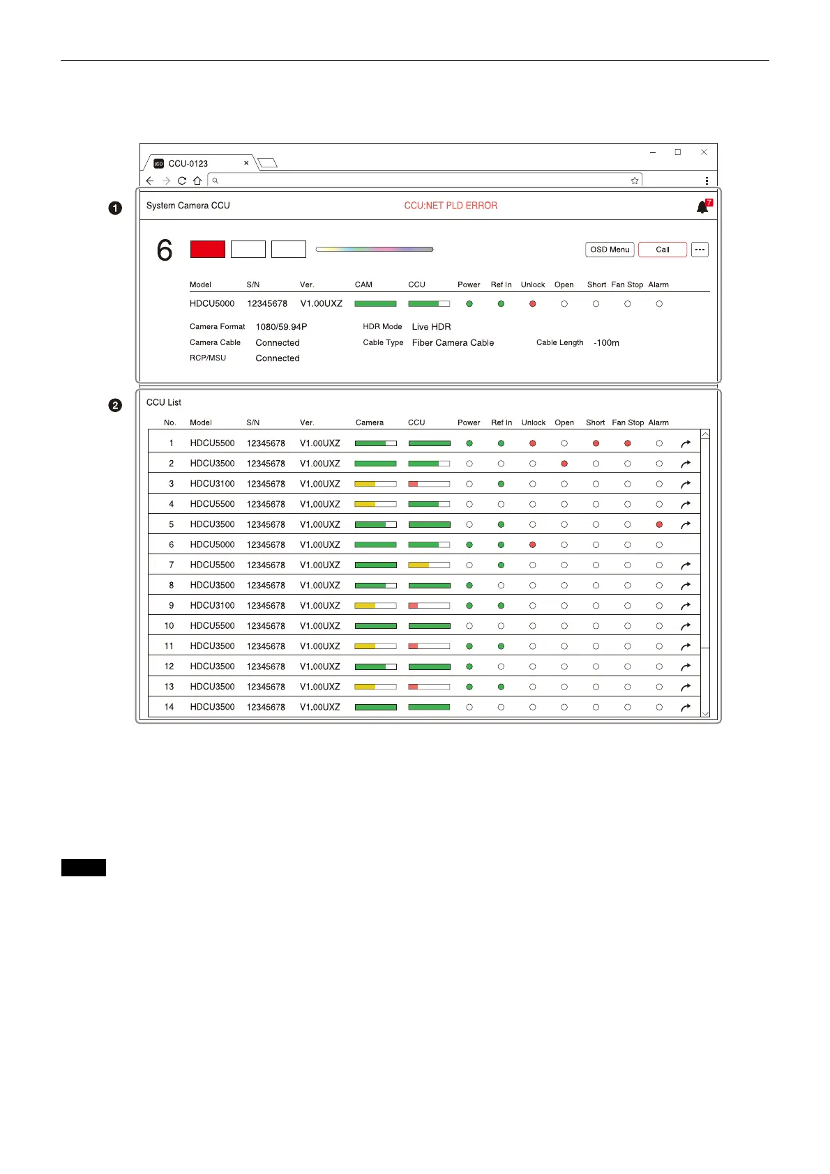 For details, see “CCU Information List Screen” (page 24).