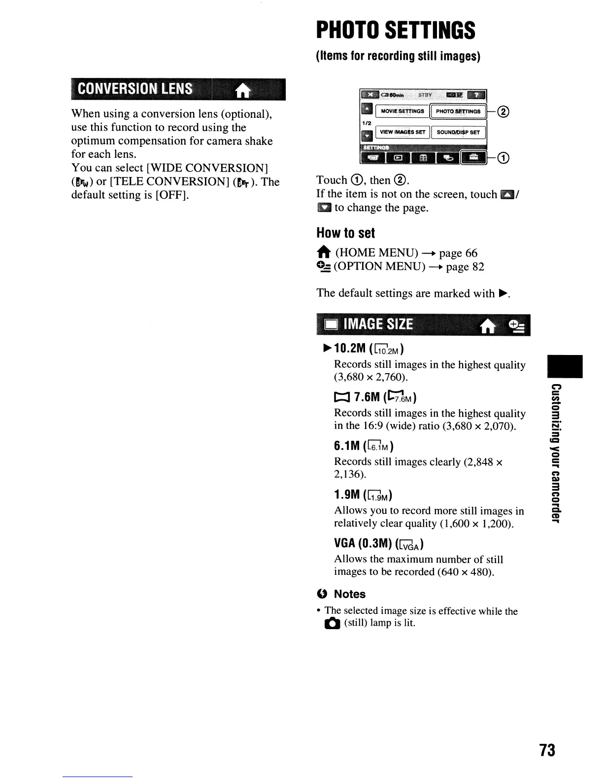 • The selected image size is effective while the