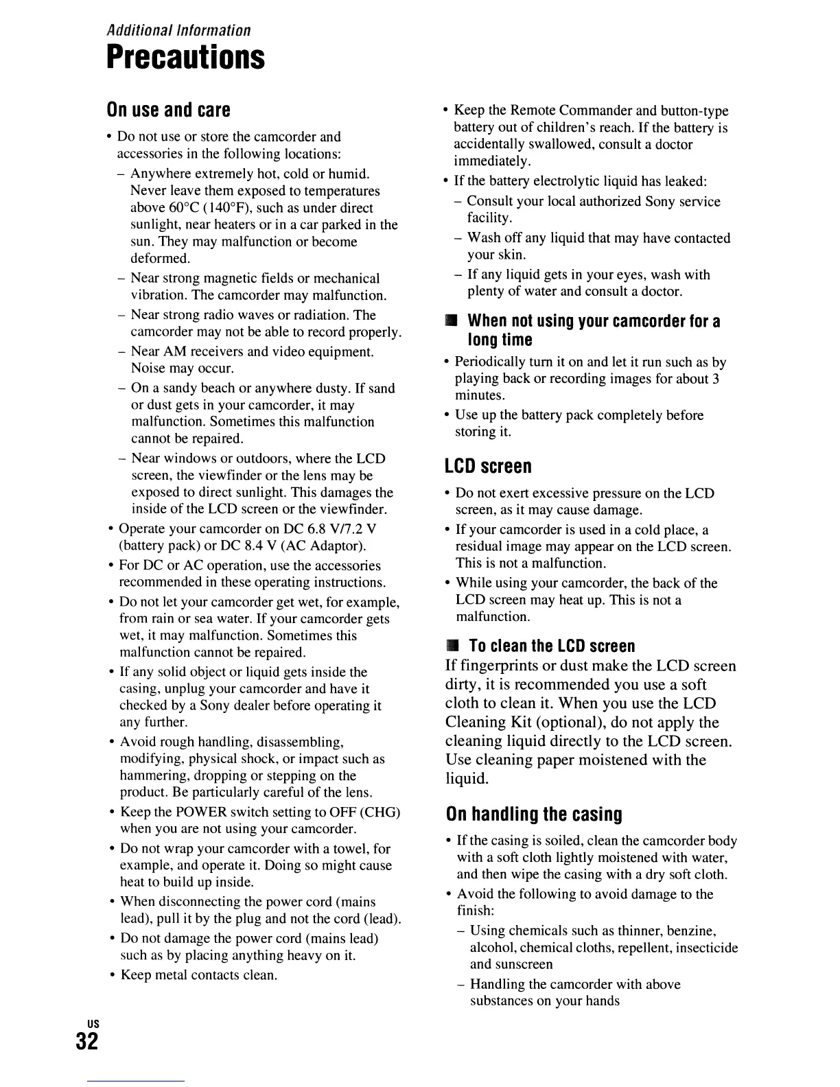 casing, unplug your camcorder and have it