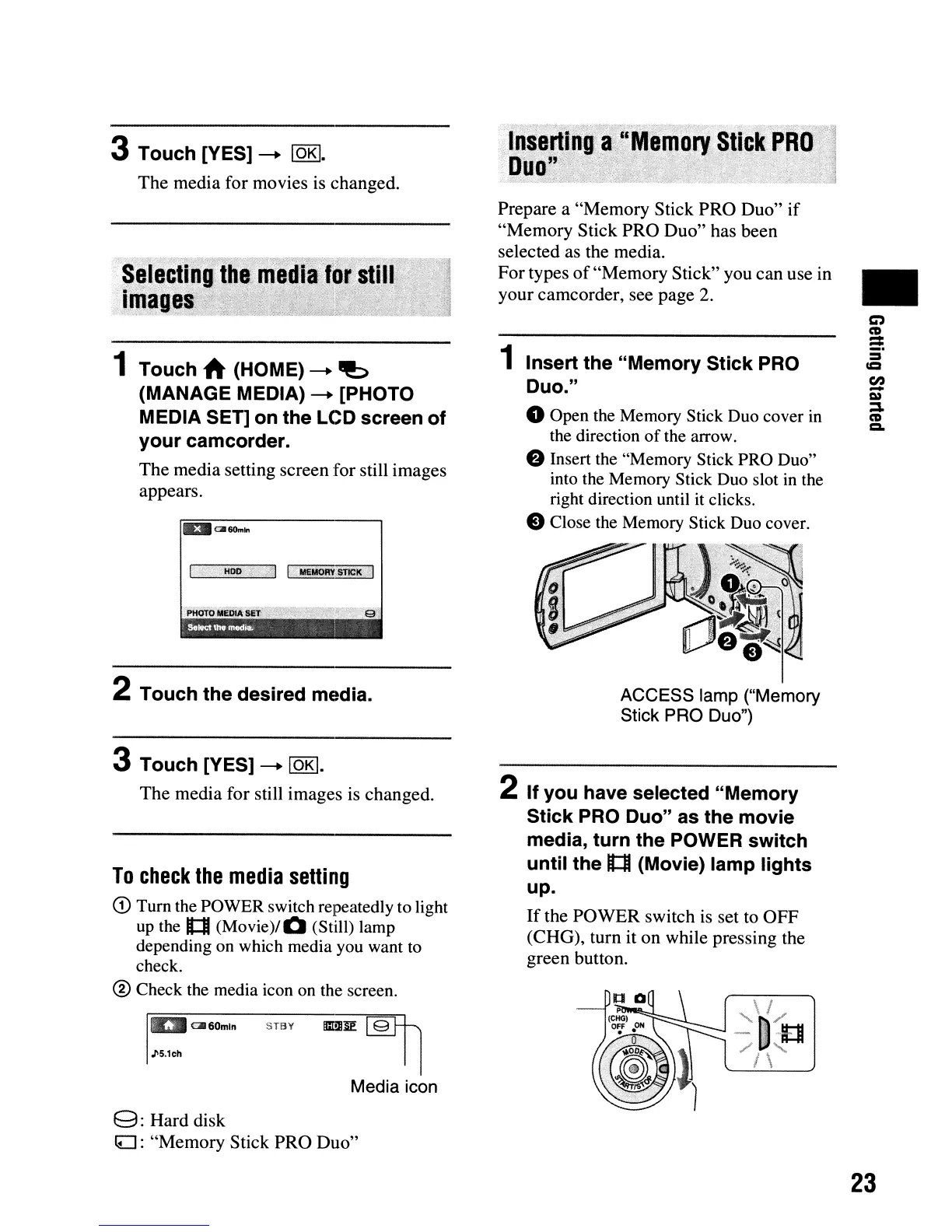 1 Insert the "Memory Stick PRO
