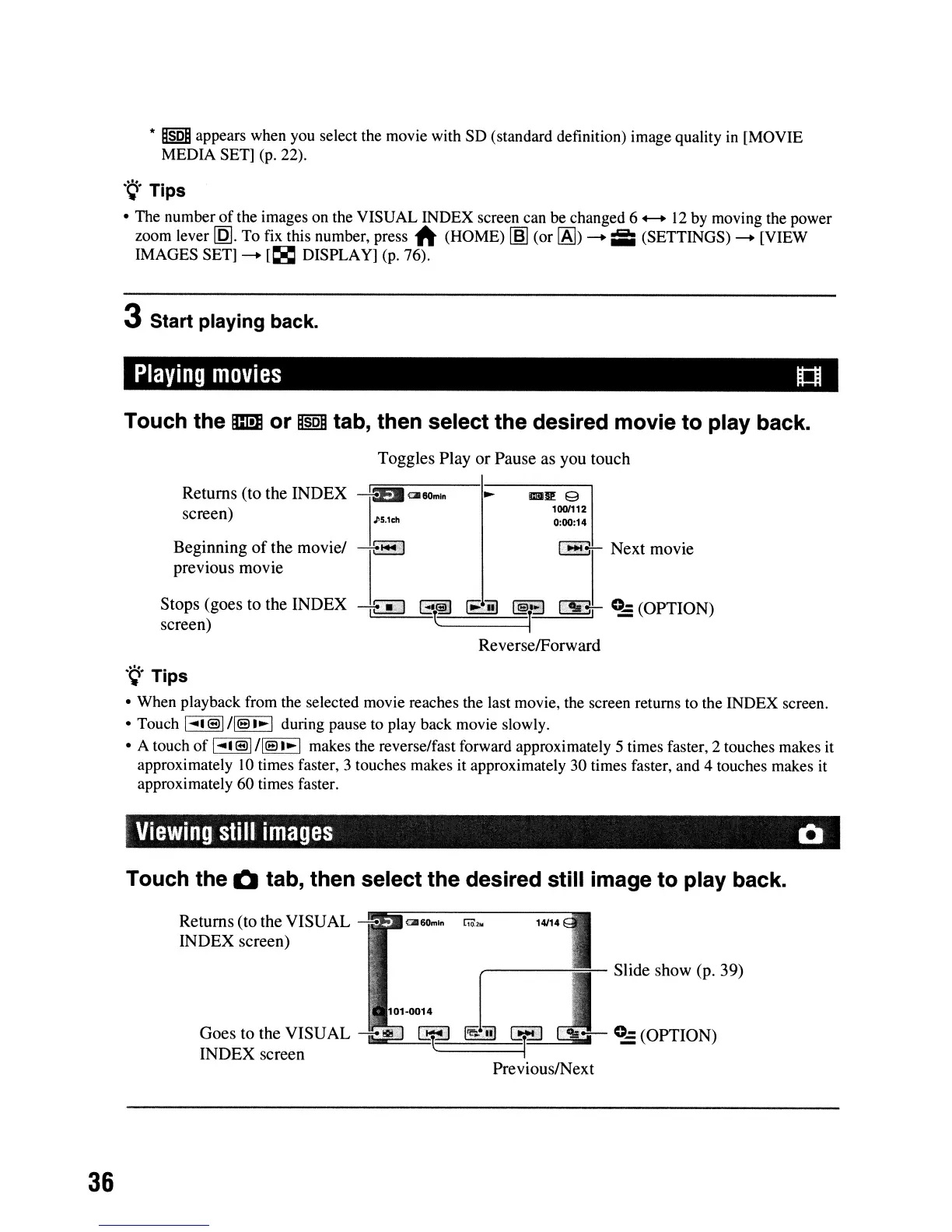 • When playback from the selected movie reaches the last movie, the screen returns to the INDEX screen.