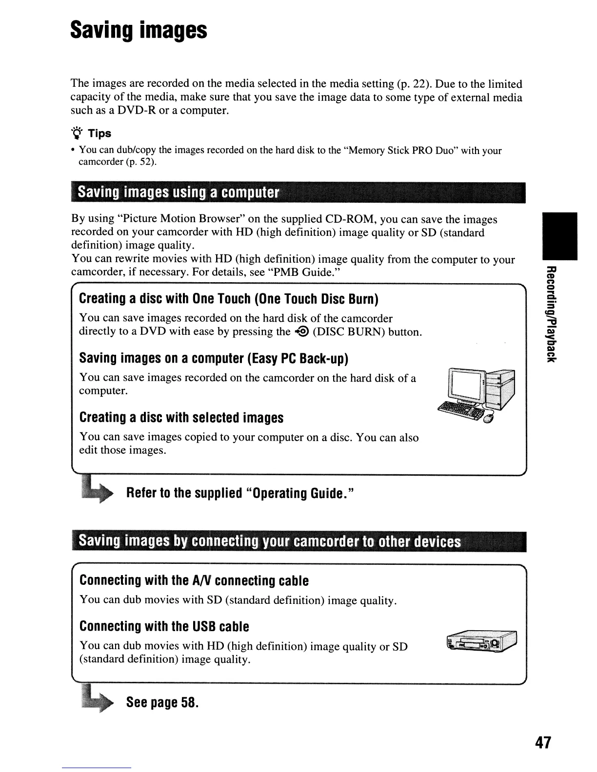 camcorder, if necessary. For details, see "PMB Guide."