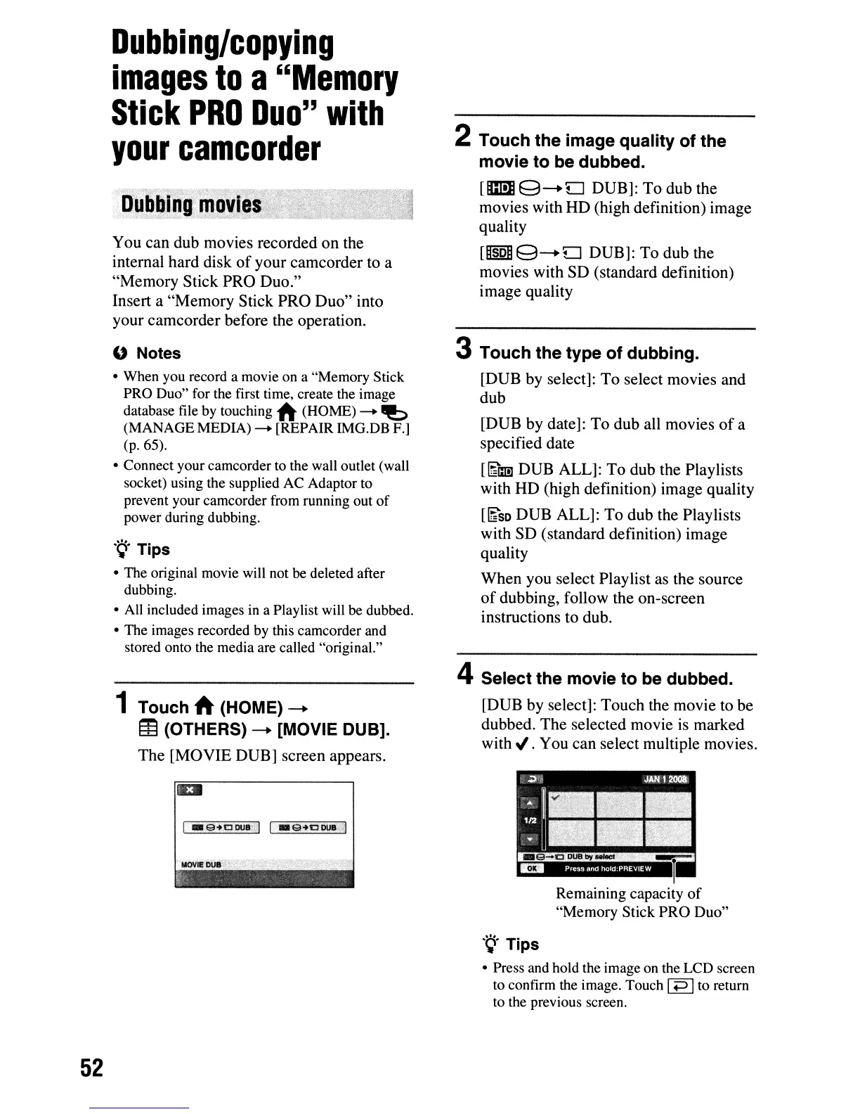 The [MOVIE DUB] screen appears.