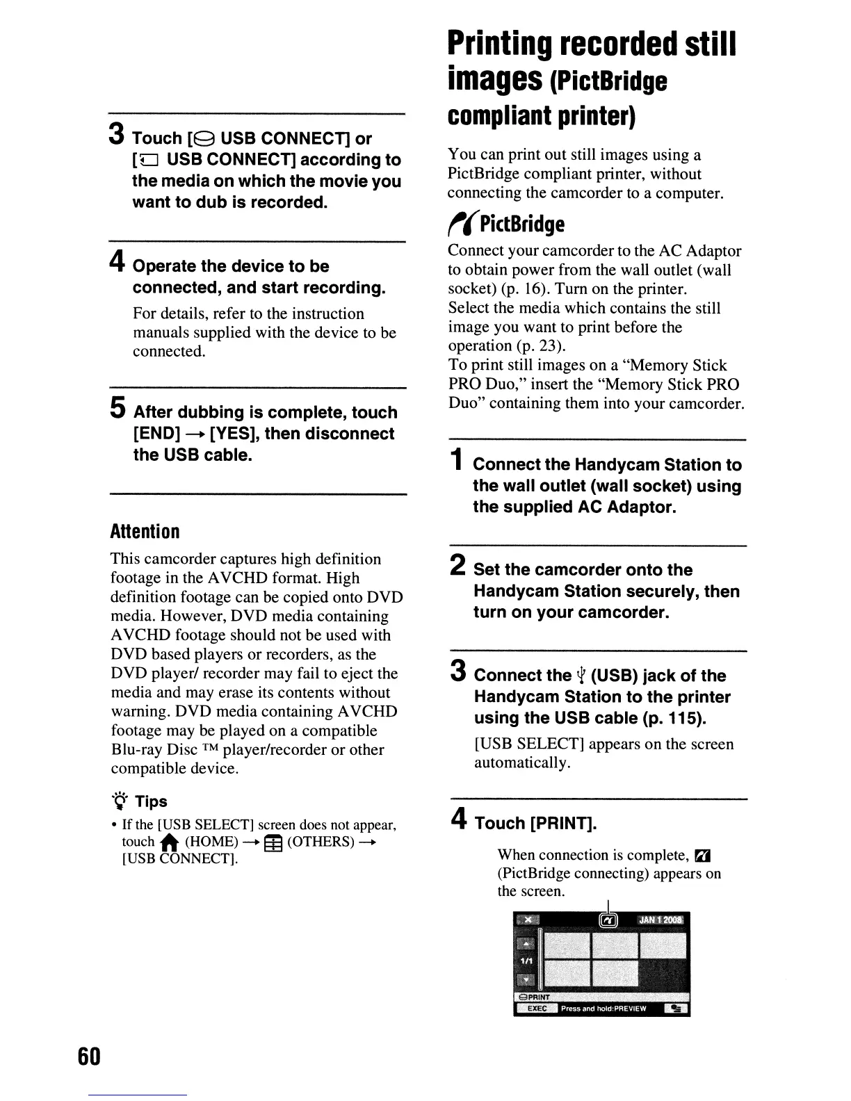 Handycam Station to the printer