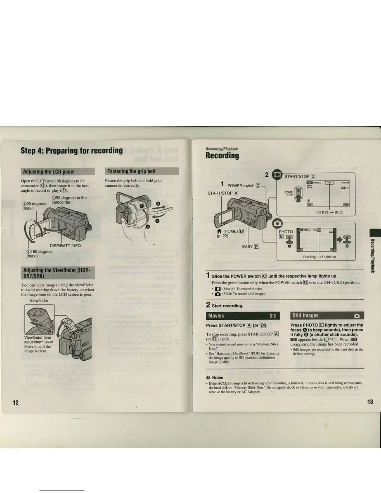 Sony HDR-SR7 - Preparing for Recording; Recording and Playback; Starting Movie Recording; Capturing Still Images