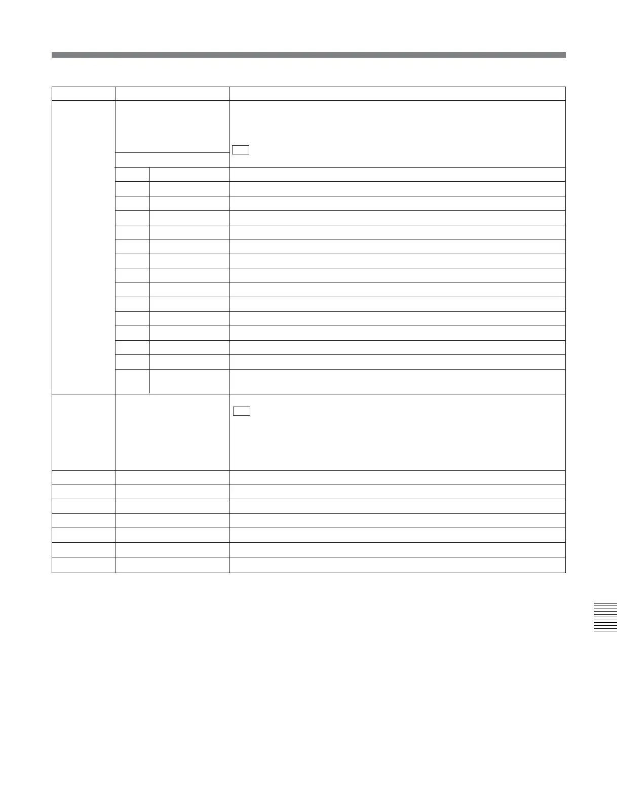 B03 RECALL BANK 3 Set to ON to recall menu settings from menu bank 3.