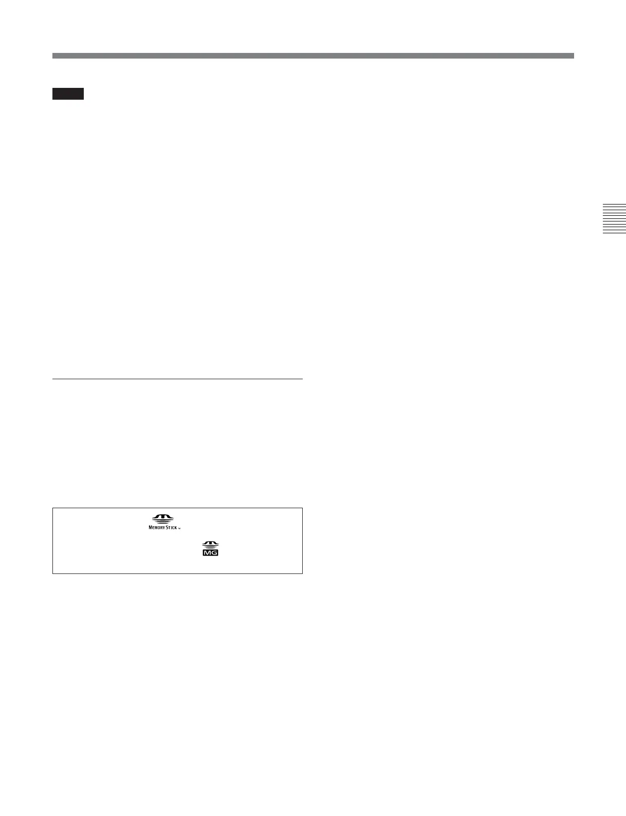• Do not disassemble or modify a Memory Stick.