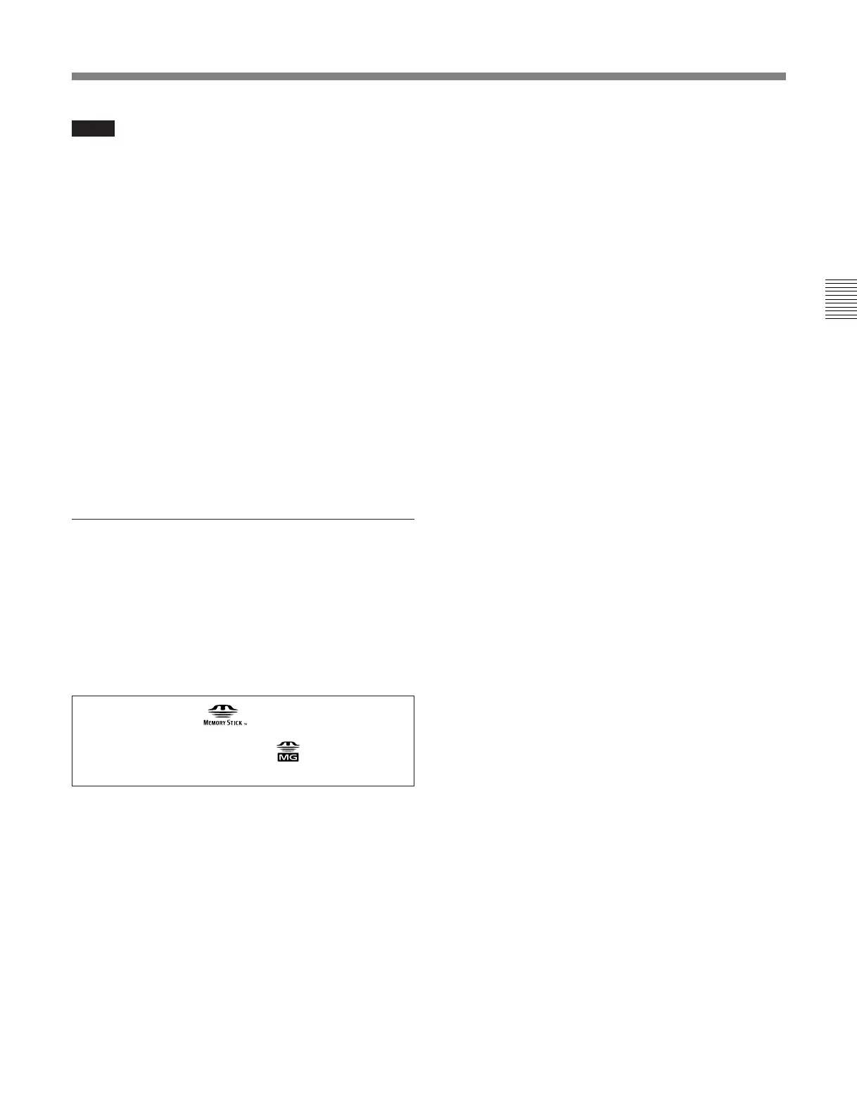 • Do not disassemble or modify a Memory Stick.