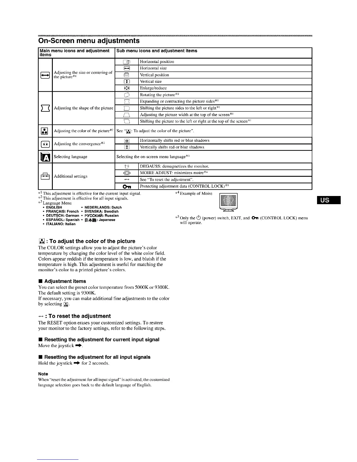 When "reset the adjustment for all inpu t signal" is activated, the customized