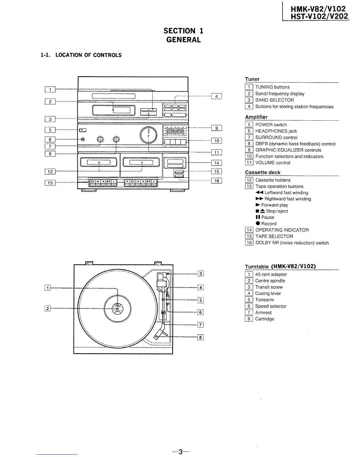 Sony HMK-V82 - Location of Controls