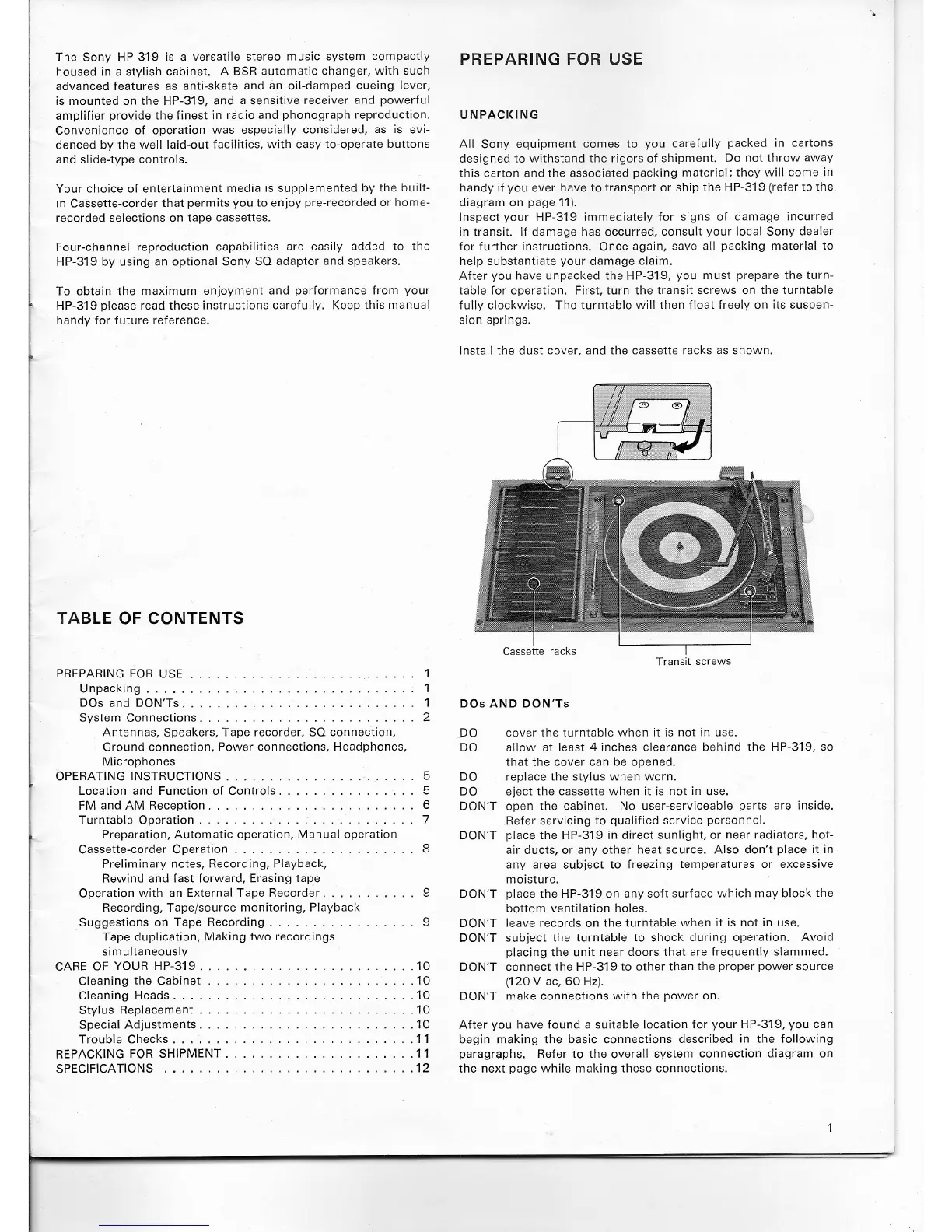 HP-319 by using an optional Sony SQ adaptor and speakers.