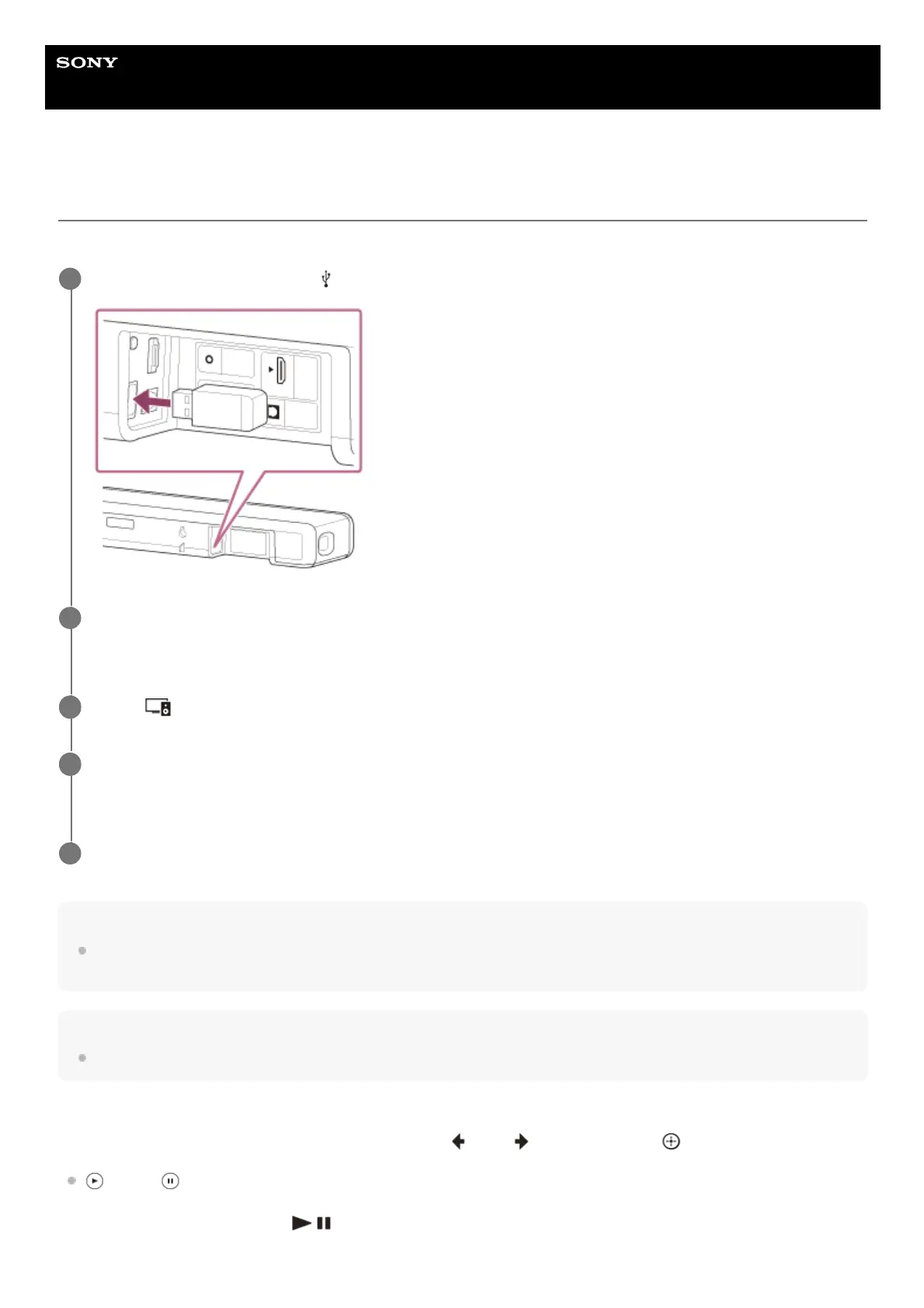 Do not remove the USB device during operation. To avoid data corruption or damage to the USB device, turn the speaker system
